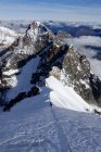 Der Grat hatte bis auf ca. 60m guten Trittschnee. 60 Meter sind zum Schrauben.