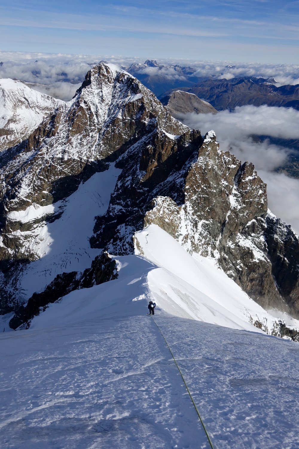 Die Überschreitung zwischen Piz Bianco und Bernina war trotz des Schnees gut kletterbar.