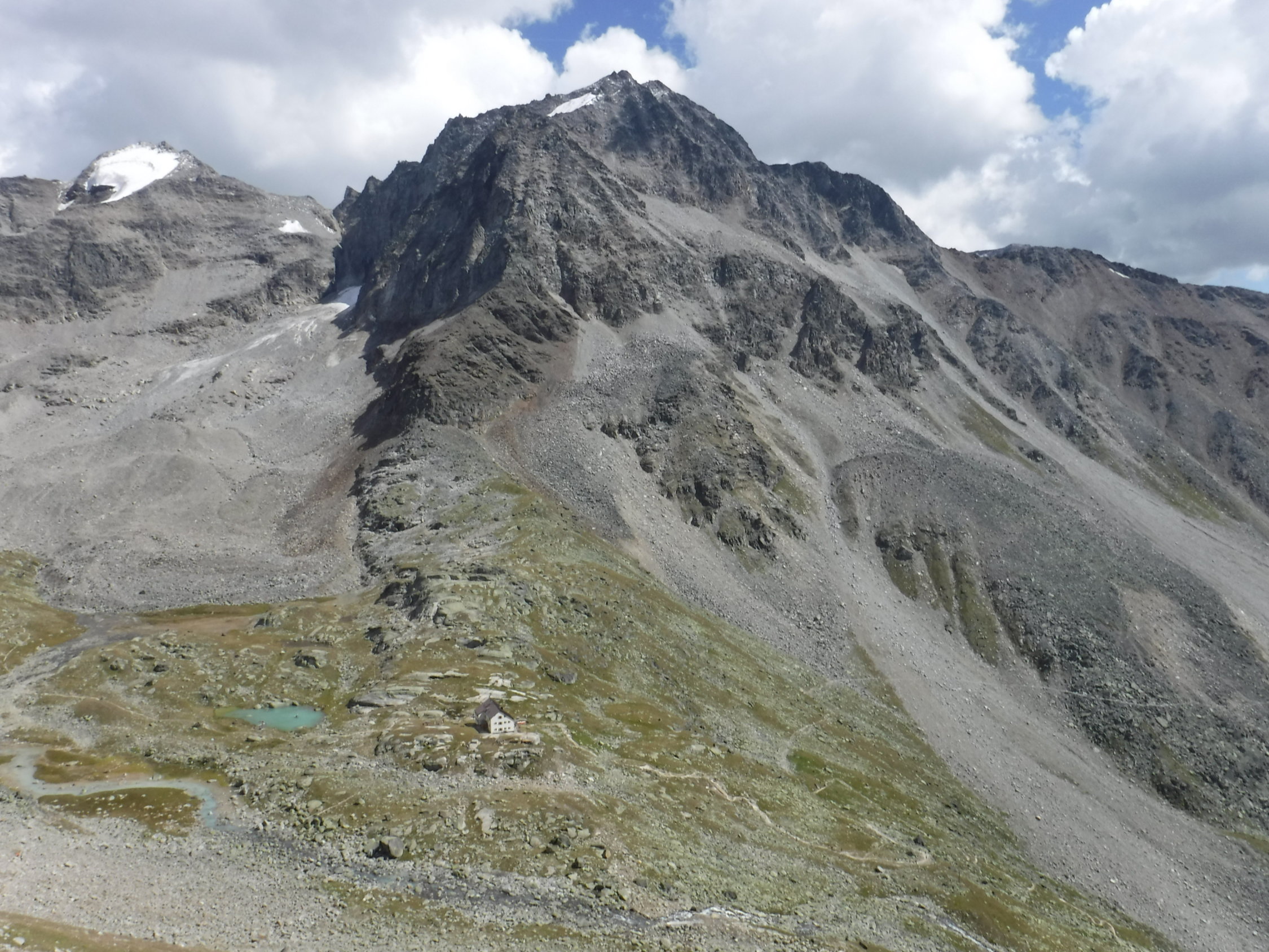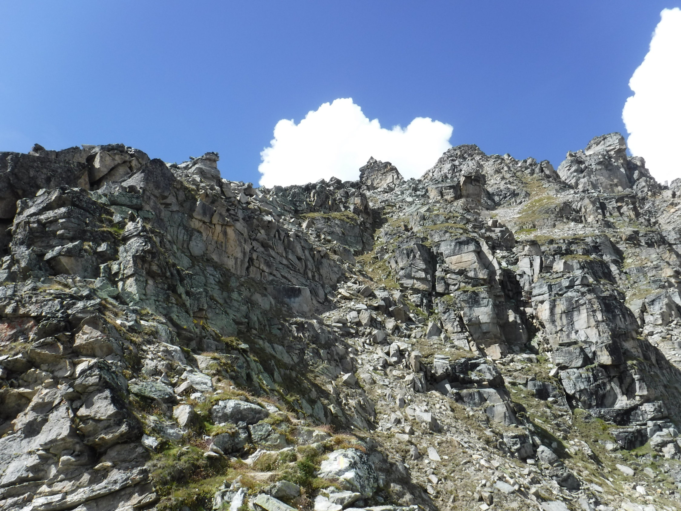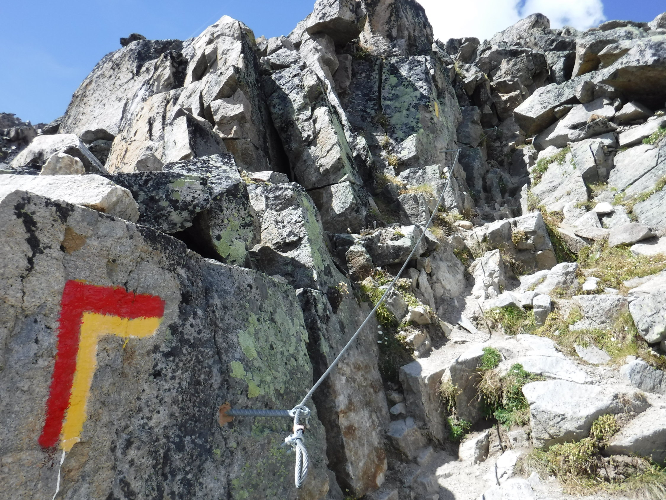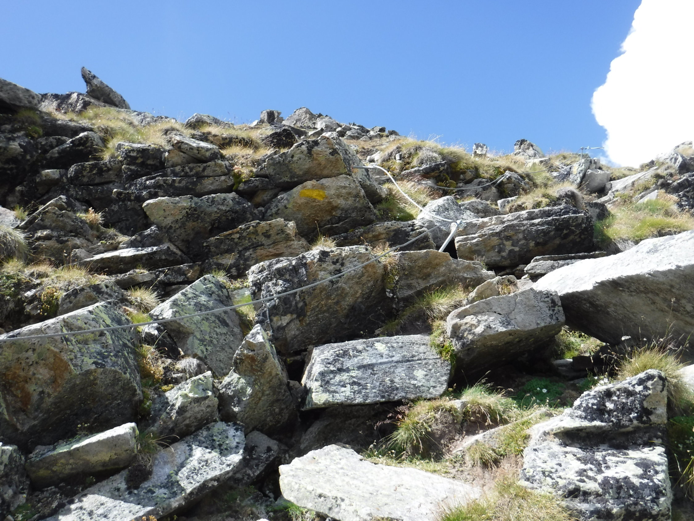 Tourenbeginn um 14:00 Uhr ab Düsseldorfer Hütte bei 19°C unter wolkenlosem Himmel im Anschluss nach dem Klettersteig zur Tschenglser Hochwand.