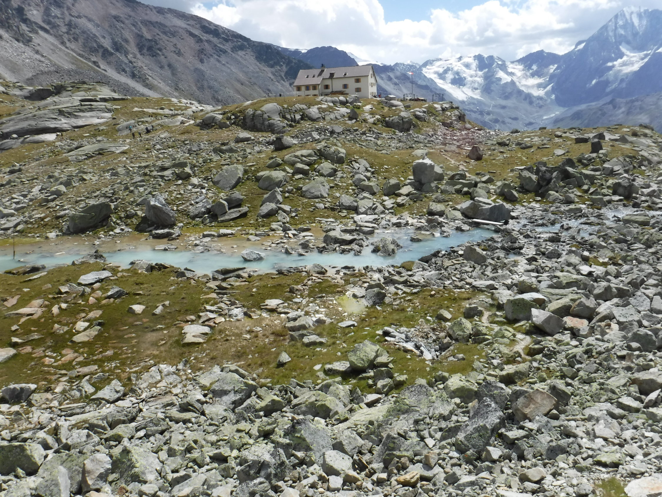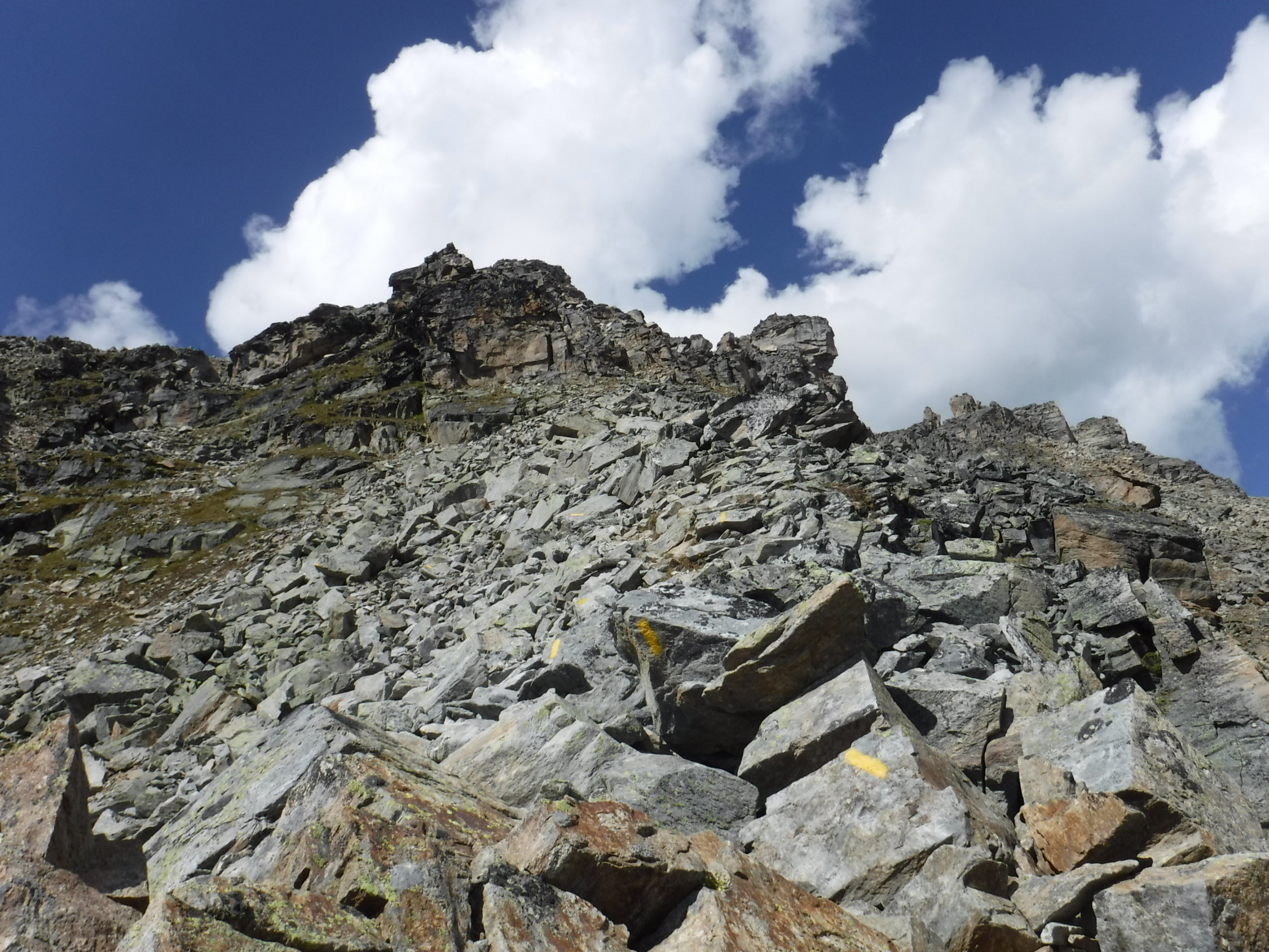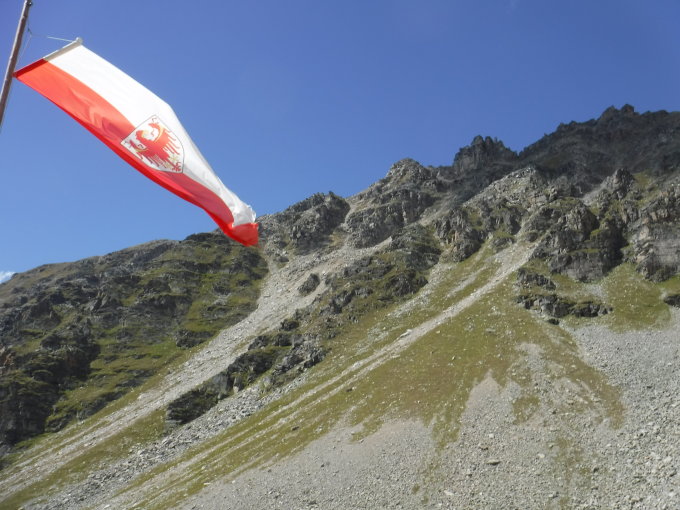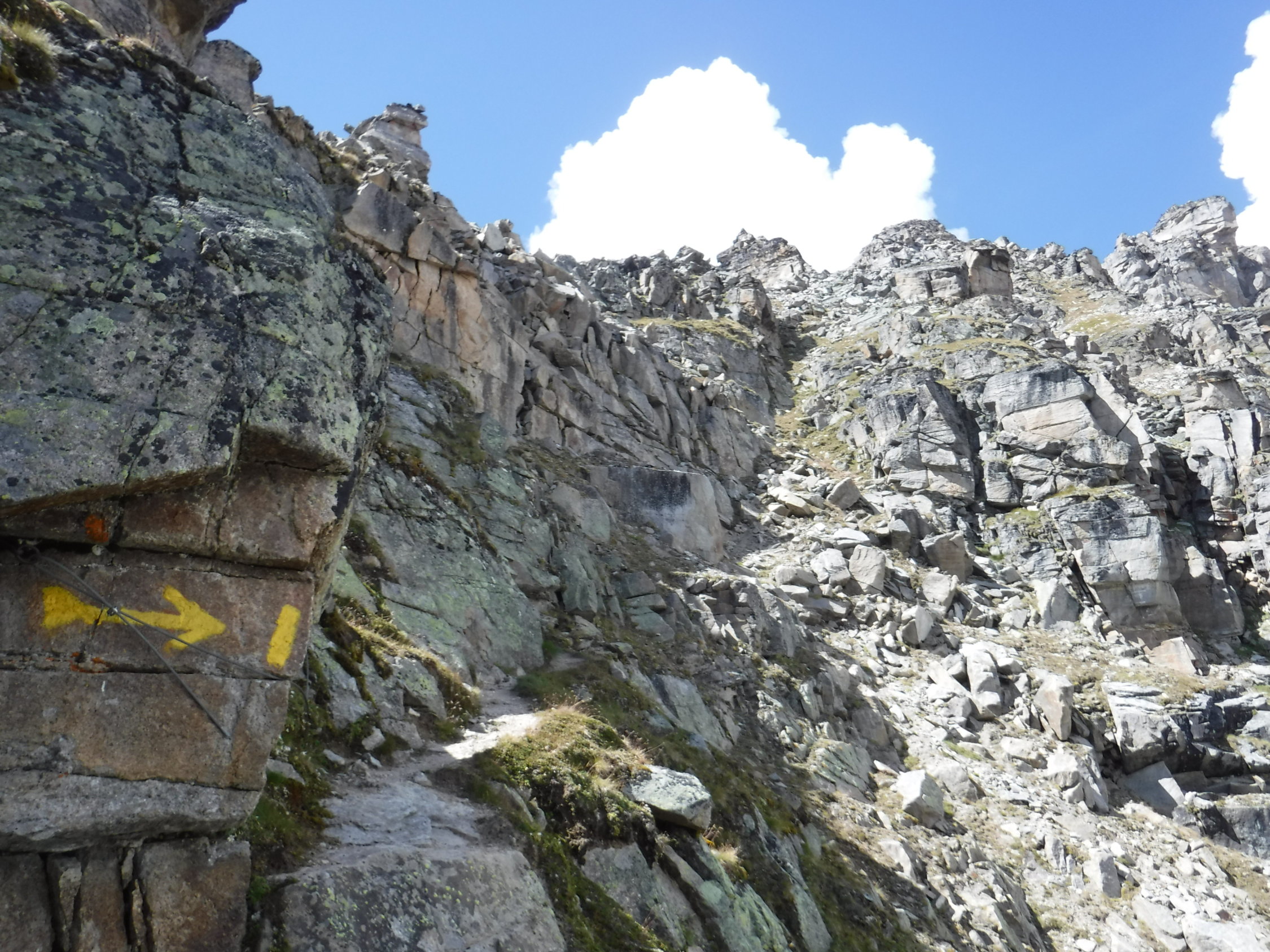 Tourenbeginn um 14:00 Uhr ab Düsseldorfer Hütte bei 19°C unter wolkenlosem Himmel im Anschluss nach dem Klettersteig zur Tschenglser Hochwand.