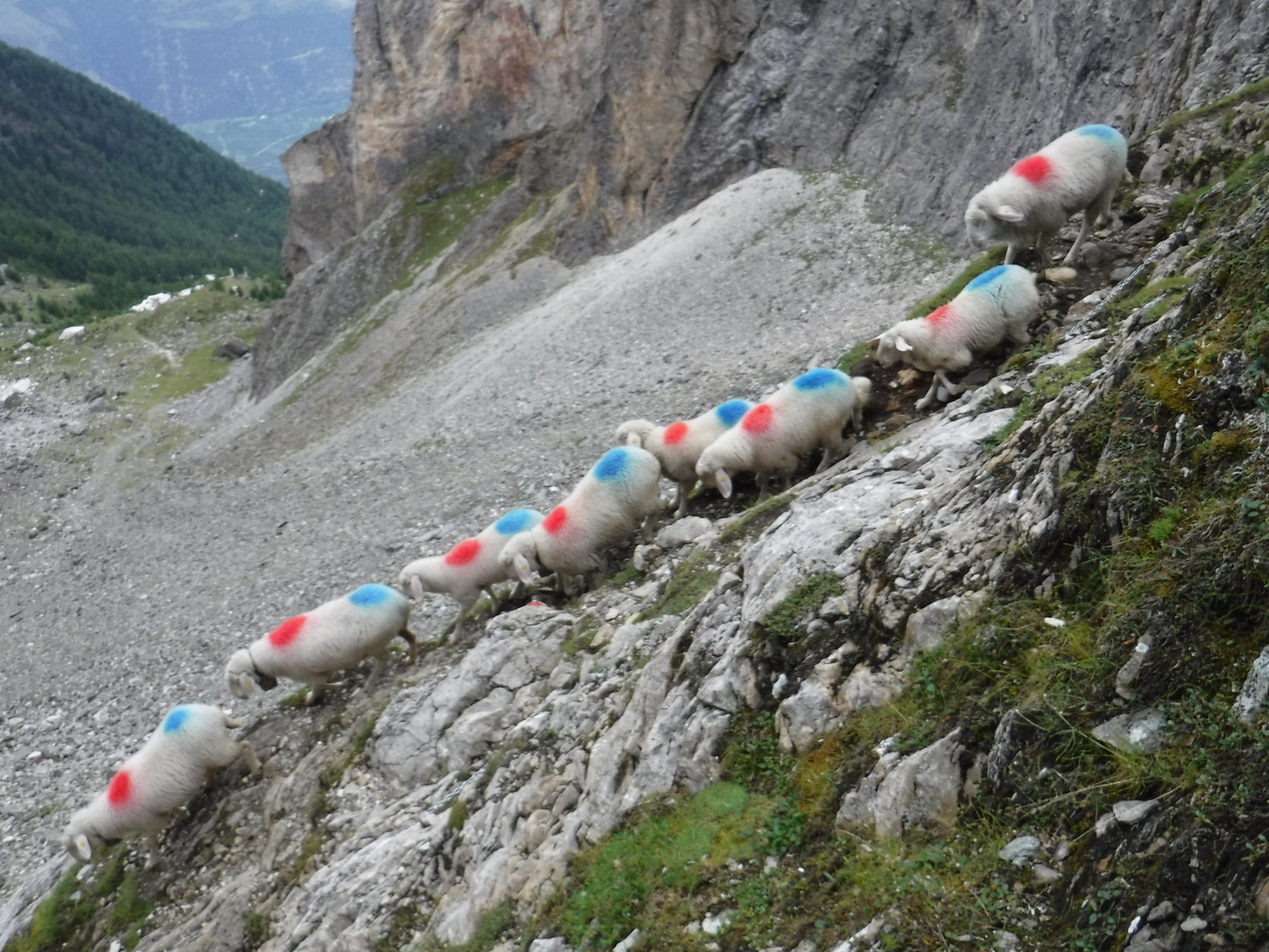 Das Bergbuch Nr. 3 ist vom 29.10.2016 und es sind bisher nur wenige Einträge enthalten. Im See-Steig kam mir ein junger Hirte mit seiner Schafherde entgegen, welche sein Hund und er vom Göflaner See holten zu dem sie immer hochlaufen, jedoch der Blitzschlaggefahr ausgesetzt sind. Auch sie meisterten den Steig. Allerdings ohne Benutzung der Ketten und Seile :-)
