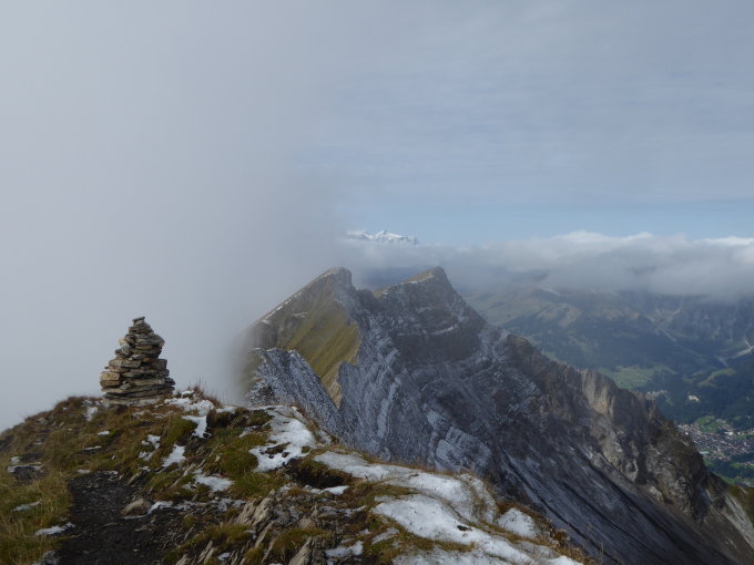 Schneereste vom Vortag ab 2200m, die sich dank Kälte und Nebel anfänglich noch hielten. Im Abstieg vom Gipfel kurz etwas heikel. Trotzdem allgemein gut zu gehen. Stellenweise matschig.