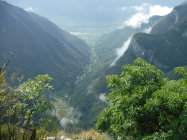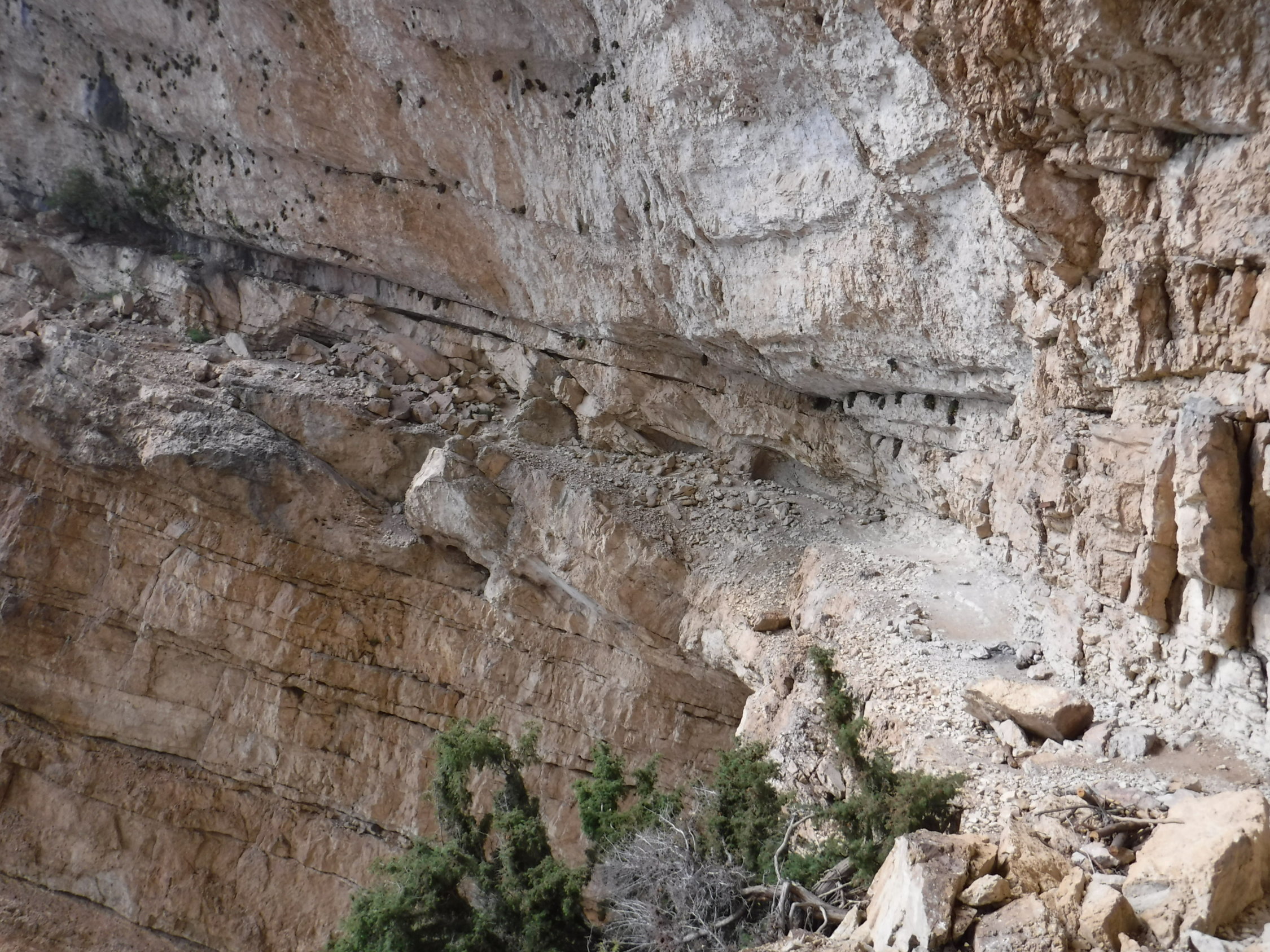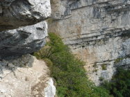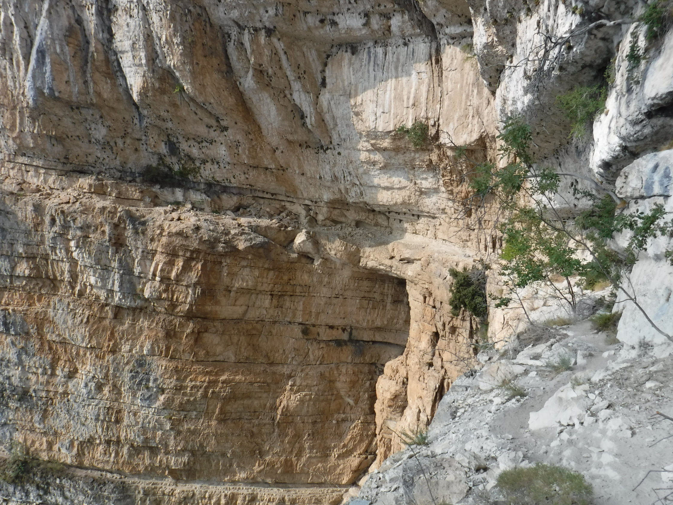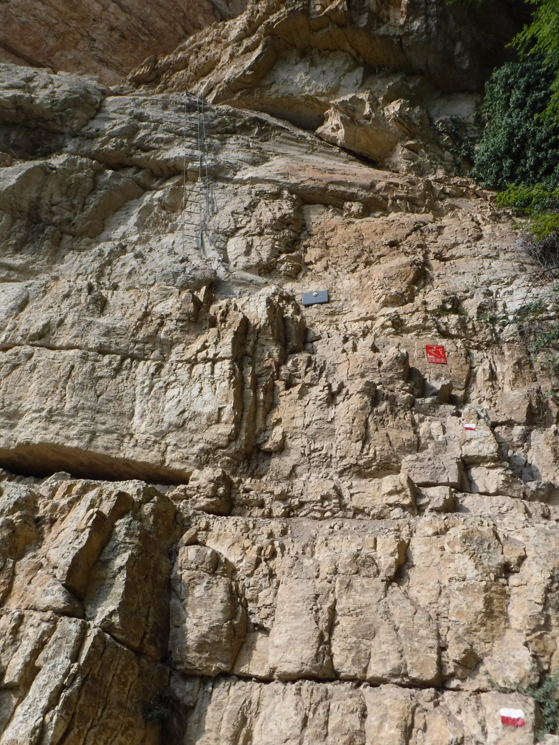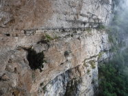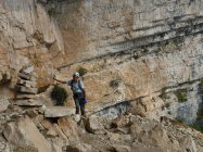 In breiter Felsschlucht-Landschaft findet man diesen Bändersteig, der nur für lauffreudige Beginner geeignet ist, wegen langem Zu-, bzw. Abstieg, je nachdem, wo man beginnt. Einer der sehr wenigen Klettersteige, die im Regen trocken bleiben. In einem überwältigenden Fels-Amphitheater.