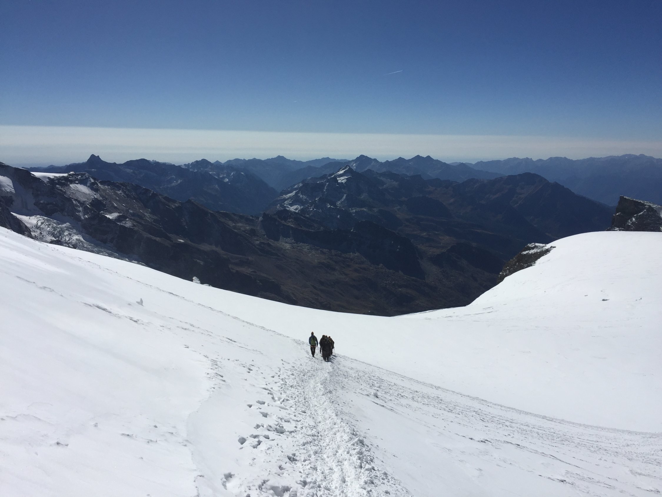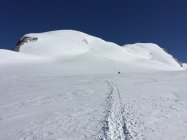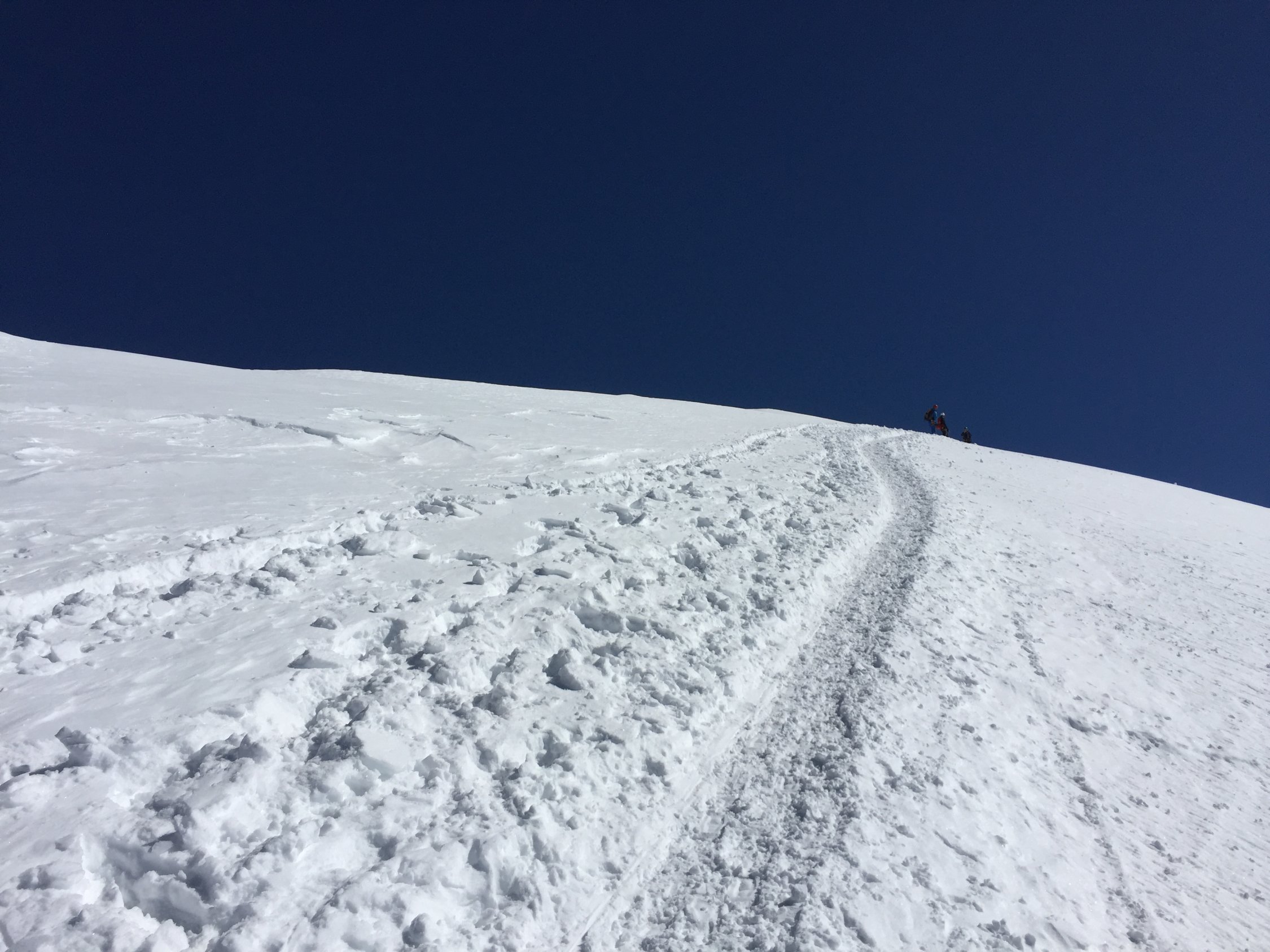 In guter Spur bis auf den Gipfel. Hart und griffig. Keine Probleme mit dem Neuschnee.