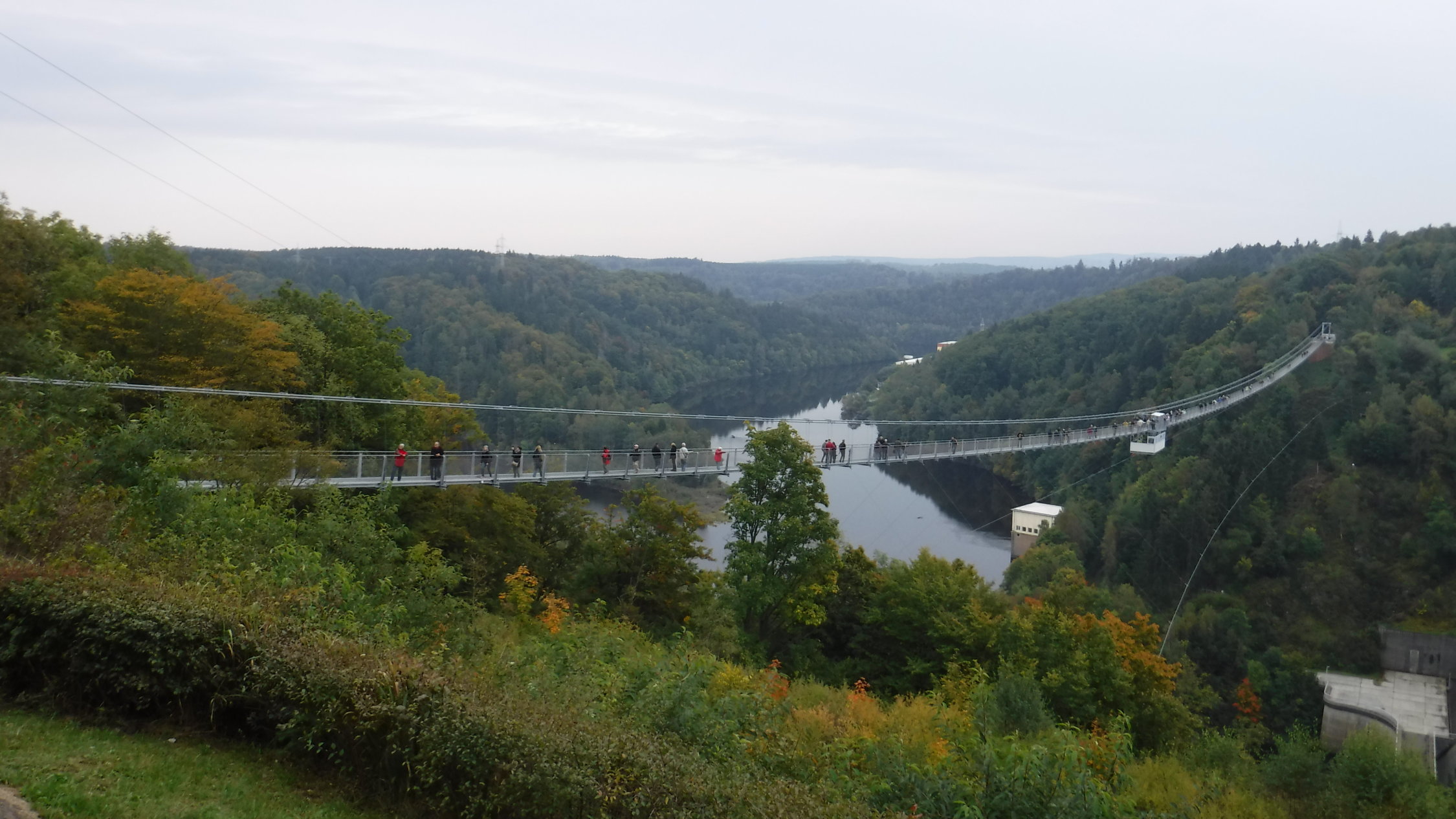 Die Hängebrücke ist derzeitig zweitlängste, frei hängende Hängebrücke der Welt. Längste frei hängende Hängebrücke befindet sich zwischen Zermatt und Grächen im Wallis (Charles Kuonen Hängebrücke mit 494 m).