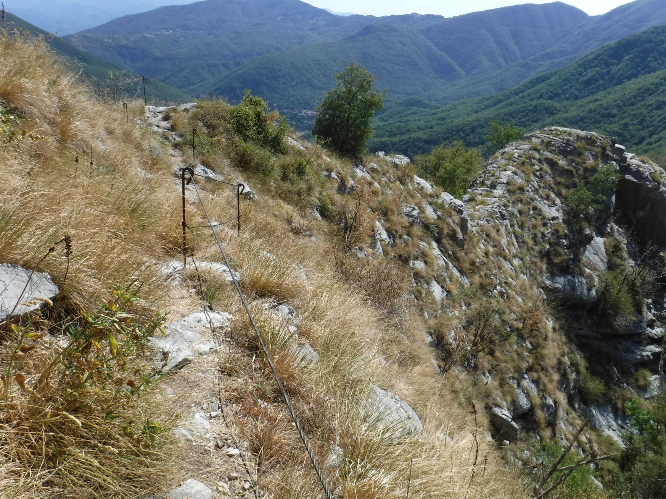 Ein an und für sich kurzer Touristenweg mit kurzem Klettersteig am Schluß. Abstieg über nicht mehr ausgeschilderten, aber immer noch befestigten Steig. In einer abgeschiedenen Ortschaft unterhalb steiler Bergflanken östlich des Monte Roccandagia und oberhalb des Stauses.