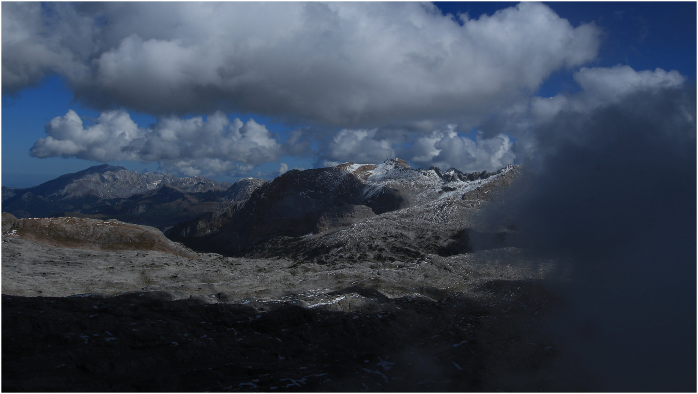 Von ein paar nordseitigen Schneefeldern mal abgesehen durchgehend gute Bedingungen, meist trocken und in den LAtschen noch recht warm. Weiter oben dann durch zunehmende Quellbewölung recht frisch.