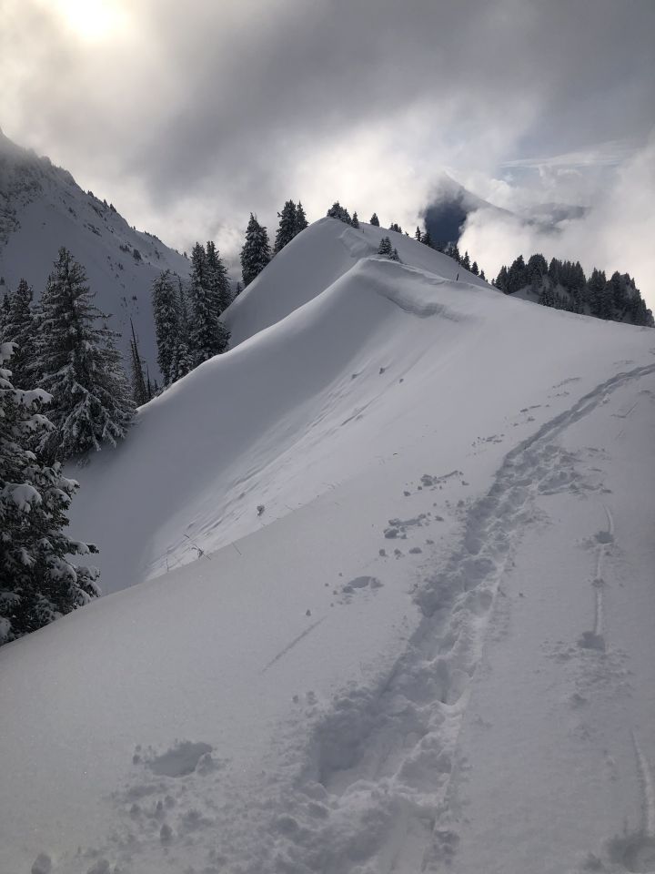 Start Hengstkurve 13:00 als Nachmittagstour. Schnee perfekt, ab Obere Chroneberg für den Aufstieg die Variante über den NW-Grat gewählt: wenn, dann bis zur Alp 1634 und weiter dem Weg in südlicher Richtung folgen, um das Steilstück auf ca. 1700 zu erreichen. (ich erreichte den Grat auf ca. 1720 durch die Nordflanke, ein Murks, um ins freie Gelände des NW-Hangs zu gelangen, nicht zu empfehlen!)