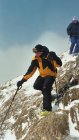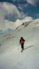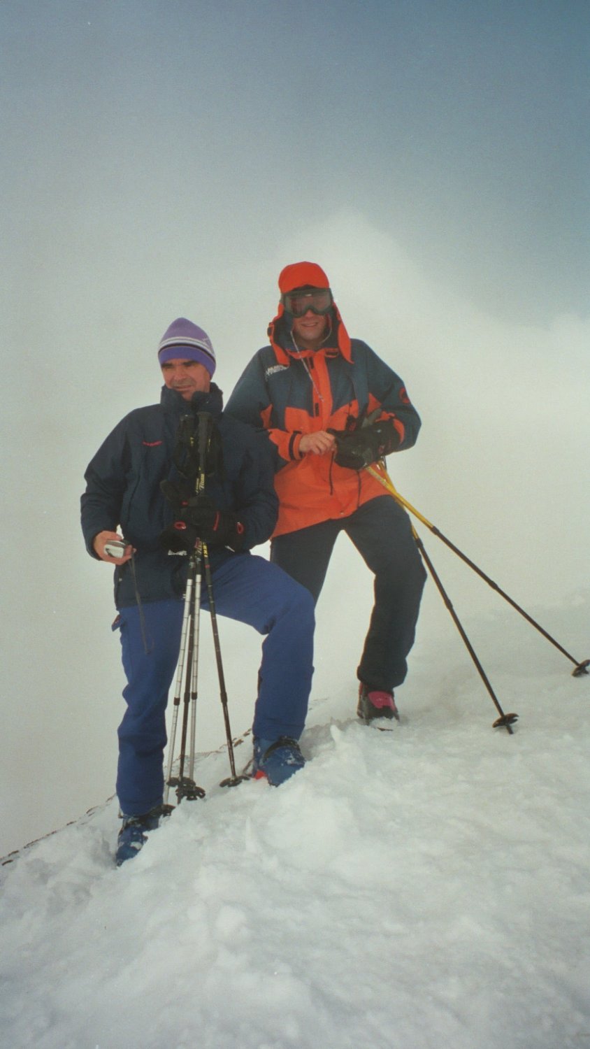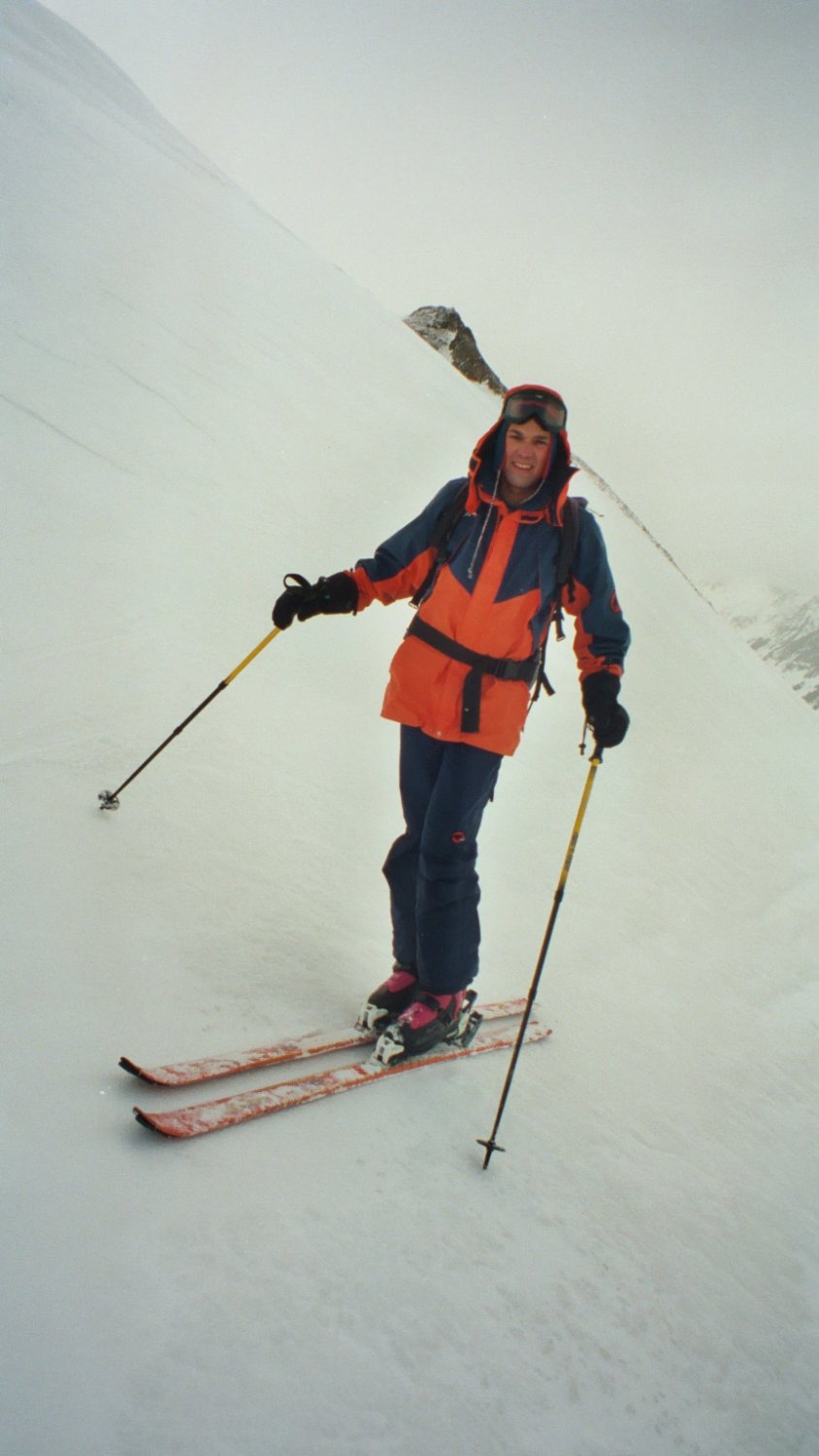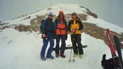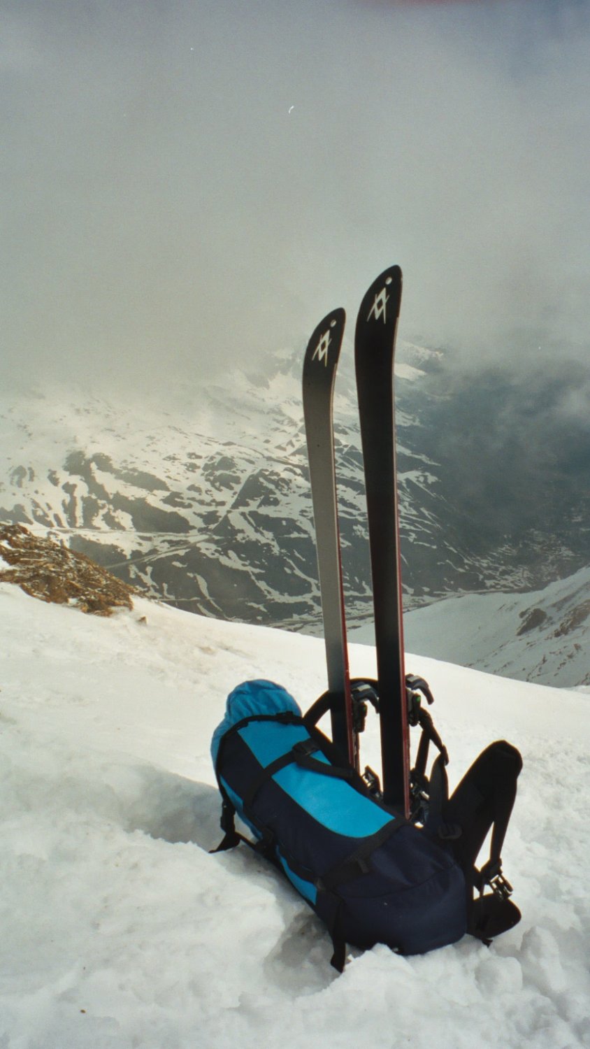 In leichtem Regen von All Aqua durch den Lärchenwald zum Rossstall hinauf. Nordföhn setzte ein und die Sicht wurde erschwert. Beim queren zum Gipfelhang rutschte ein Kollege aus und segelte den ganzen Steilhang hinab. Harscheisen montiert, noch einen Schluck heissen Tee und weiter gings ohne Zwischenfall zum Helgenhorn Gipfel. In der Abfahrt bis San Giacomo schöner Sulz, durch den Wald nach All Aqua zurück schwerer Nassschnee.