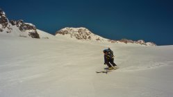 gesichtet. Gute Bedingungen zum Nördlichen Tiefensattel hinauf. (Trittschnee) Weiter zum Tiefenstock Gipfel von dort grandiose Fernsicht. Ein deutscher Bergführer bekundete grosse Mühe beim Abstieg vom Tiefensattel, Geduld war gefragt! Bester Sulzschnee auf der Abfahrt über den Gletscher bis nach Tiefenbach hinab.