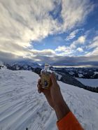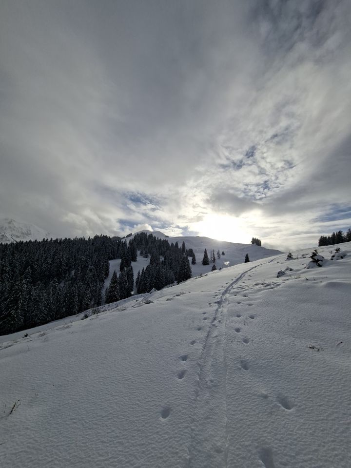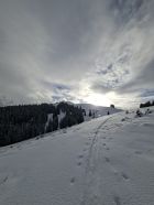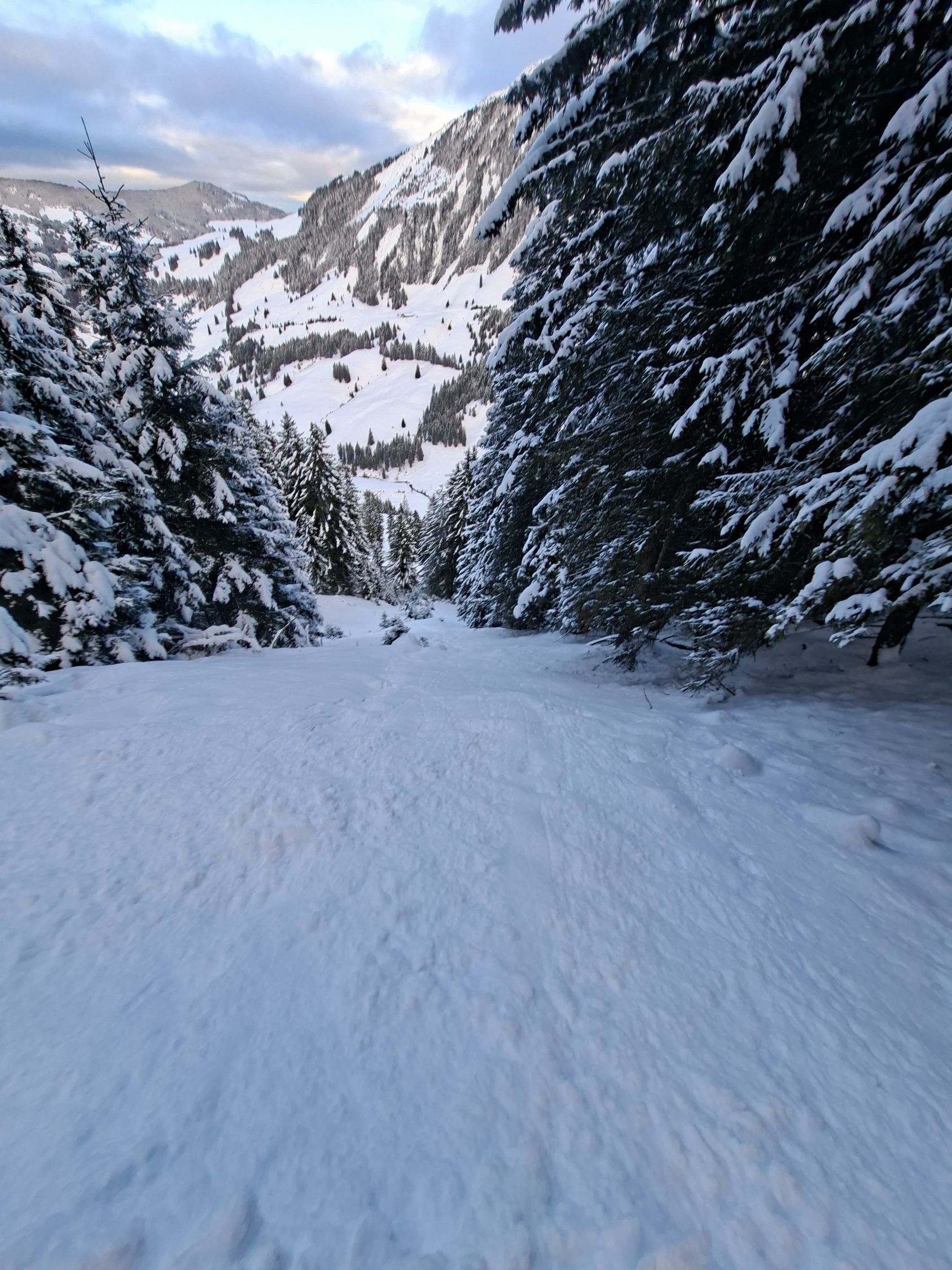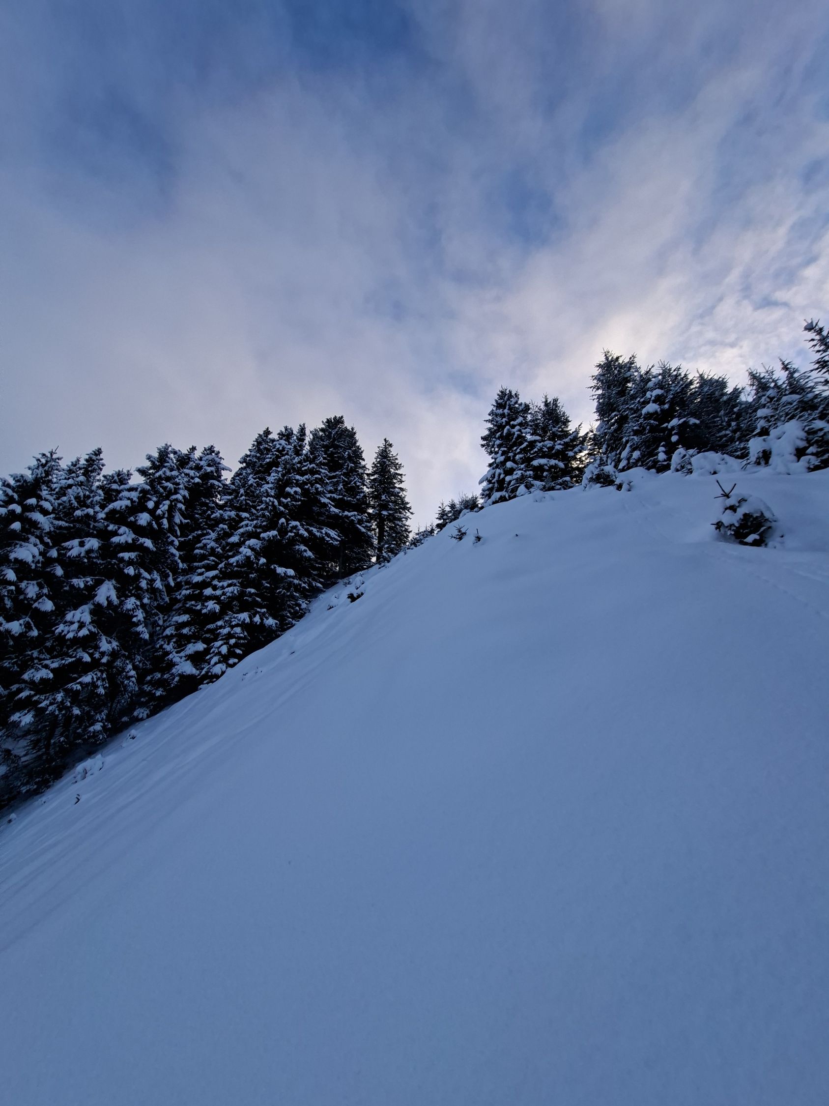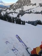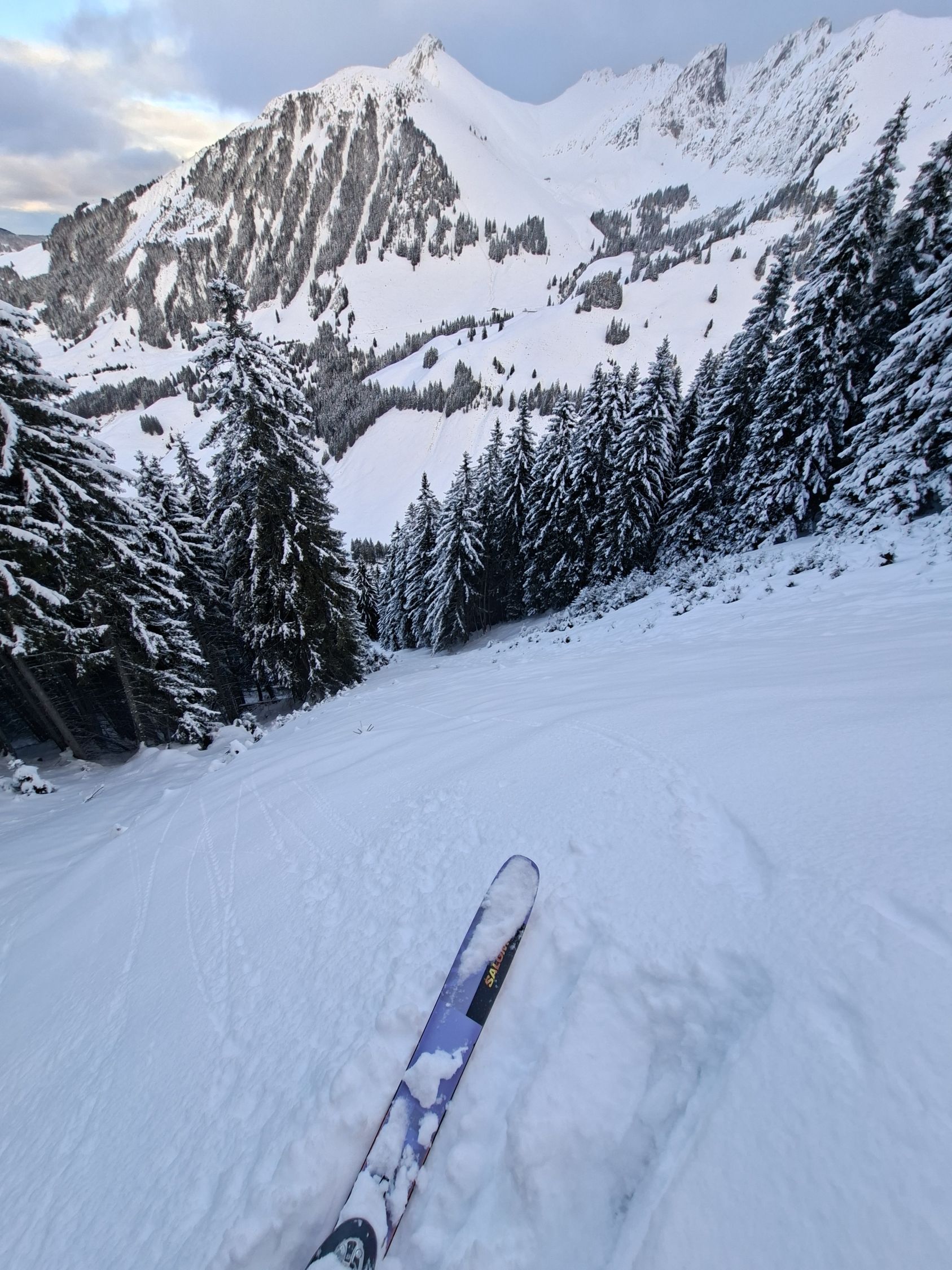 Später start kurz vor 4uhr dafür mit etwas sonne.Erster hang nur knapp schnee.ab 1500 gut bis gipfel.abfahrt bis culi etwas wind in pulver.culi super pulver ohne wind hänge untenraus knapp und ab schlund-bach bereits feucht.