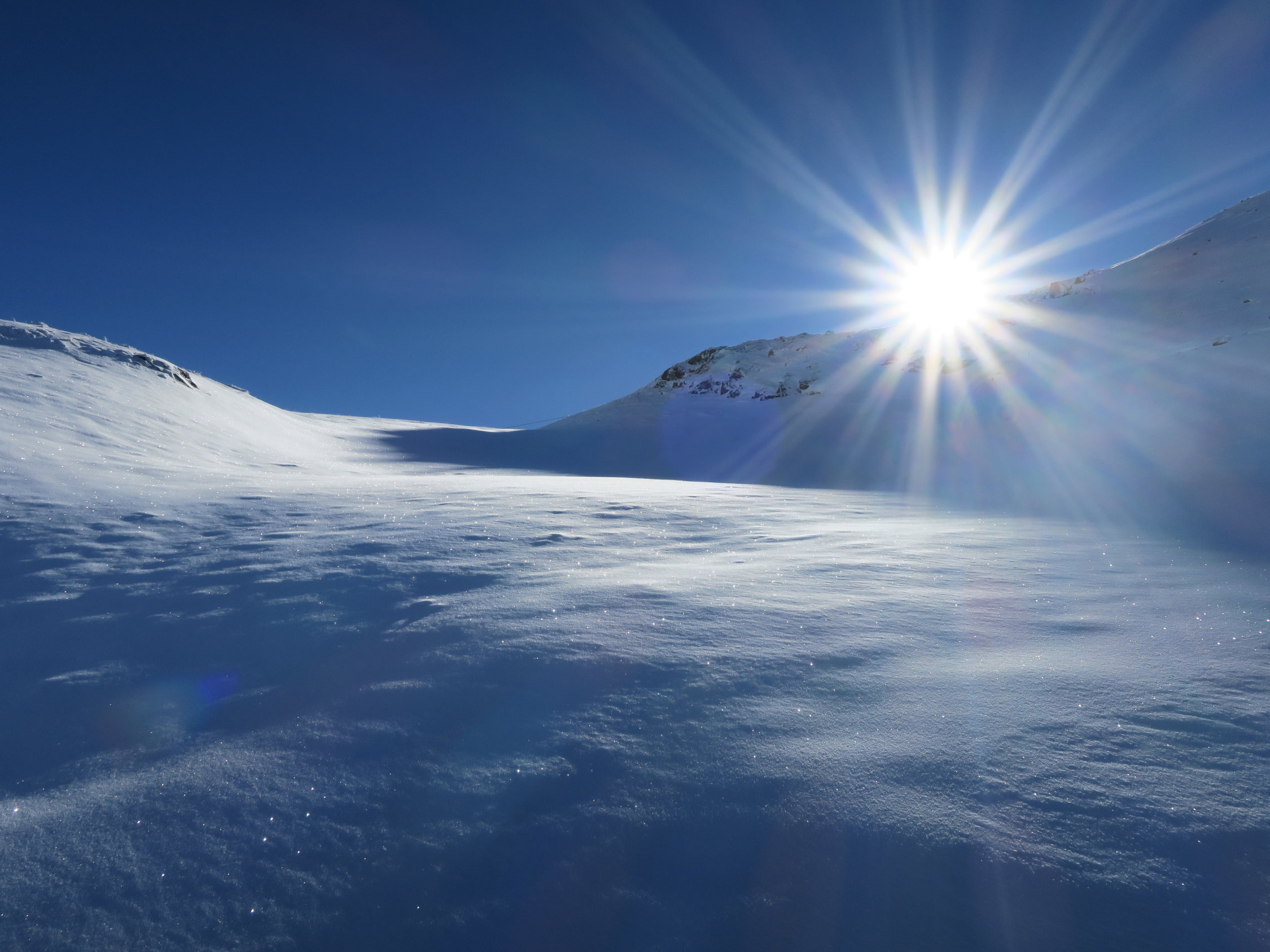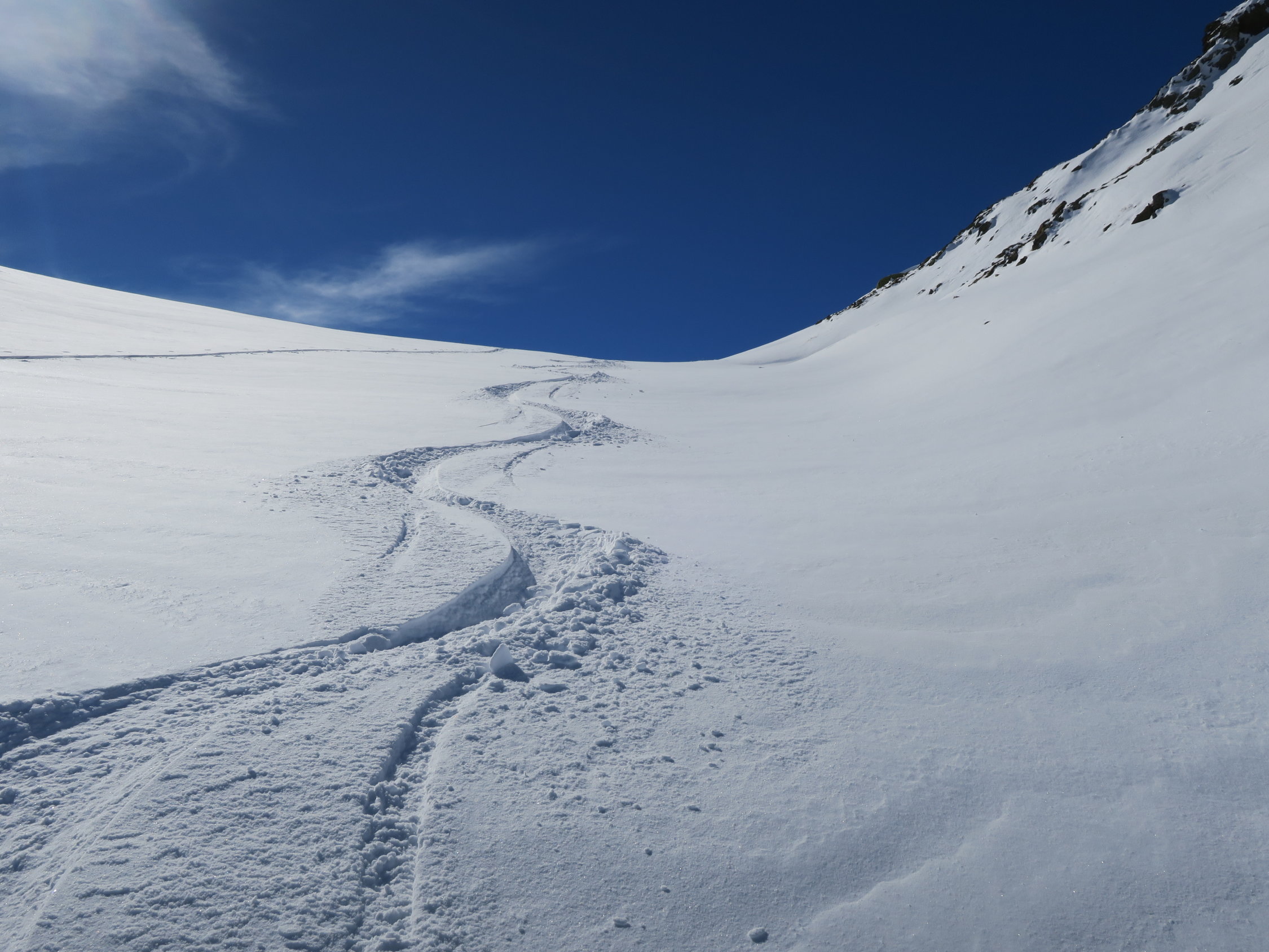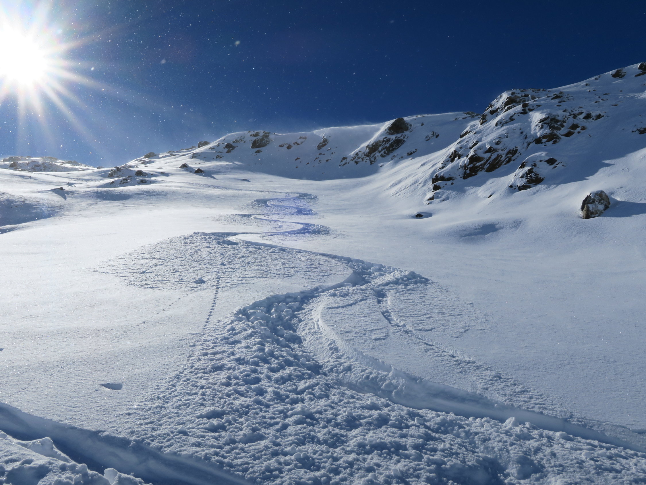Super toller Pulverschnee leider natürlich auch noch sehr viel Steine - Schnee reicht gerade bis zum Parkplatz