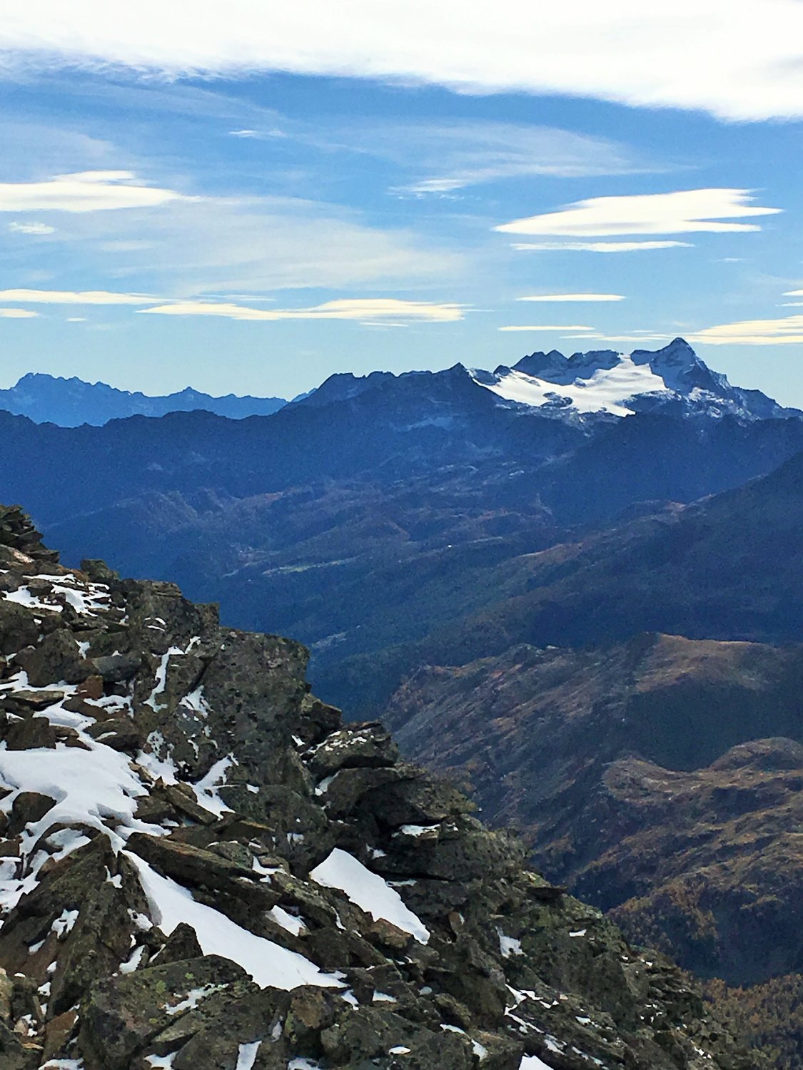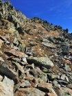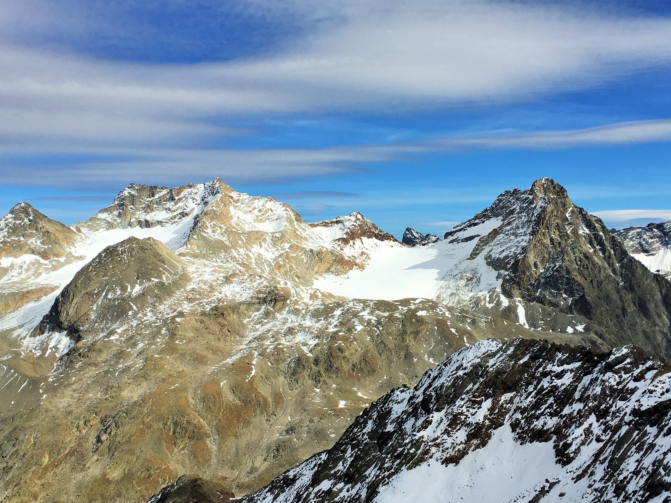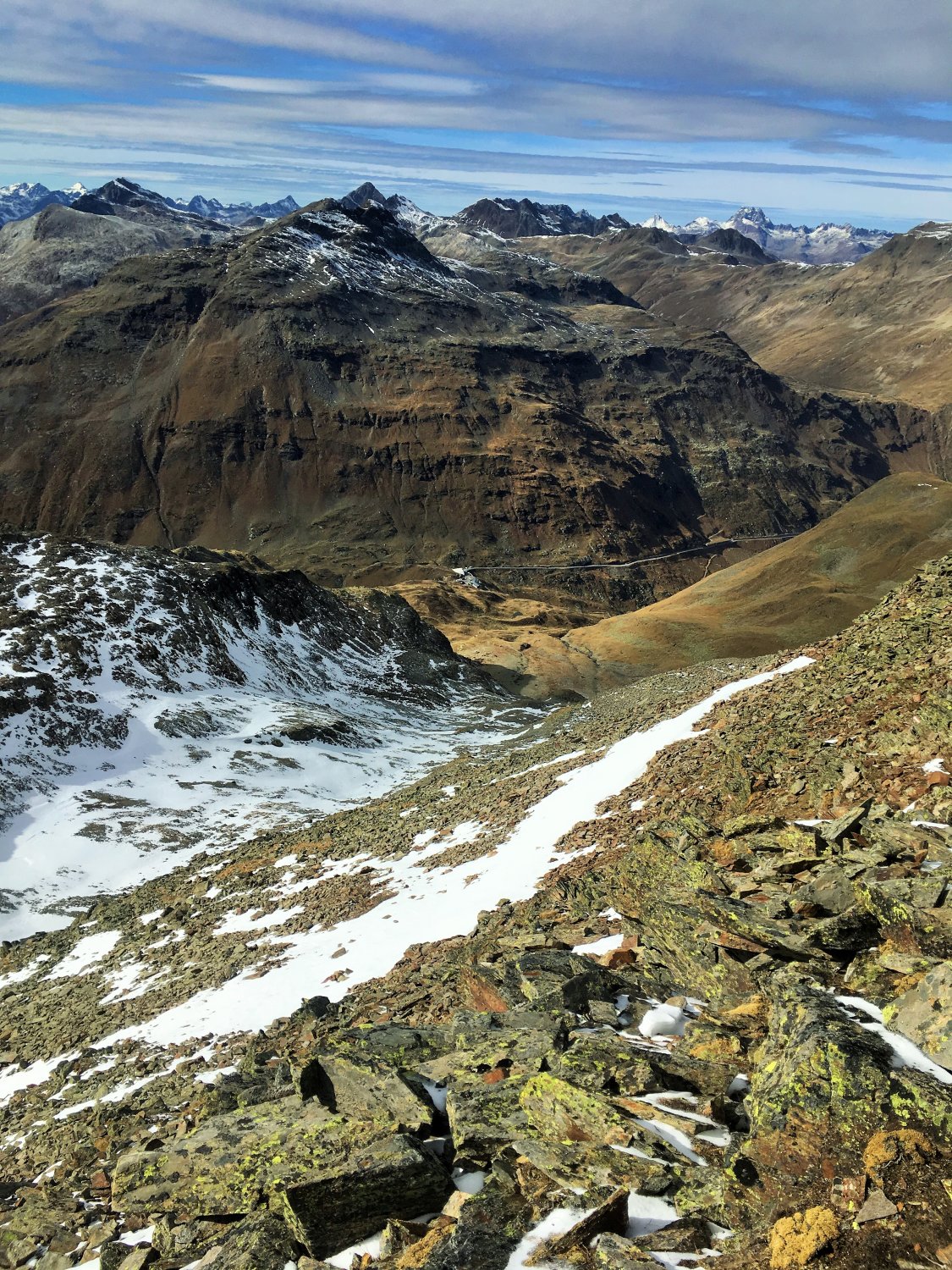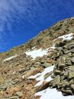 Nur auf dem Gipfelgrat Hartschnee, sonst perfekte Verhältnisse und schöne alpine Herbsttour. Ich bin auf dem rotweiss markiertem Wanderweg von der Forcola di Livigno 2314 m südwärts ins Val dell Orsera und bei 2600 m ostwärts Richtung Grenze gewandert. Jetzt ist die Orientierung etwas schwieriger. Einzelne Markierungen weisen den Weg nordwärts und ab ca. 2750 m wieder westwärts Richtung Nordwestgrat. Nach dem Nordwestgrat in die Westflanke des Gipfels Richtung Norden und auf dem Grat wieder Richtung Süden auf den namenlosen Gipfel. Schwierigkeit T4.