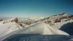 Um 13.30 von Gitschenen zu einer Nachmittagtour aufgebrochen. Am Spilauersee vorbei stetig ansteigend zur Lücke zwischen Hagelstock und Siwfass hinauf. Am Hagelstock Gipfel sonnig aber das ganze Tal lag unter einer Nebeldecke. Pulverschneeabfahrt zurück zur Bergstation dort lag auch die Nebelgrenze darüber wolkenlos.