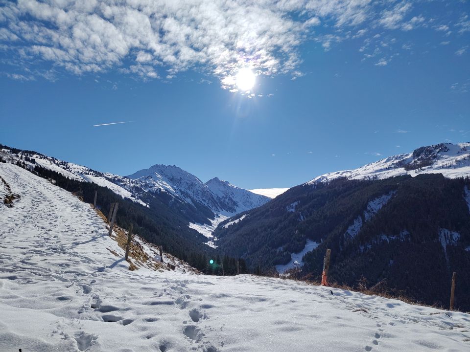 Letztlich löst es sich gut auf, nur im Aufstieg sind wir unter der Kleinmoosalm auf ein längeres Stück nahezu schneefreien Weg getroffen.