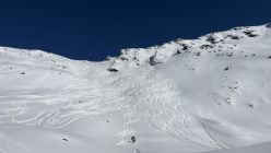 Es wurden auch keine Abgänge, alte oder neue, beobachtet. Wer diese Route aufsteigt, kann sich auch die steinigen Bereiche einprägen, wenn man diese nicht bereits von Sommerbegehungen kennt.