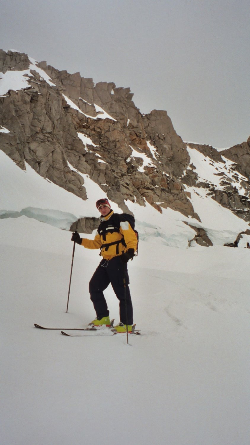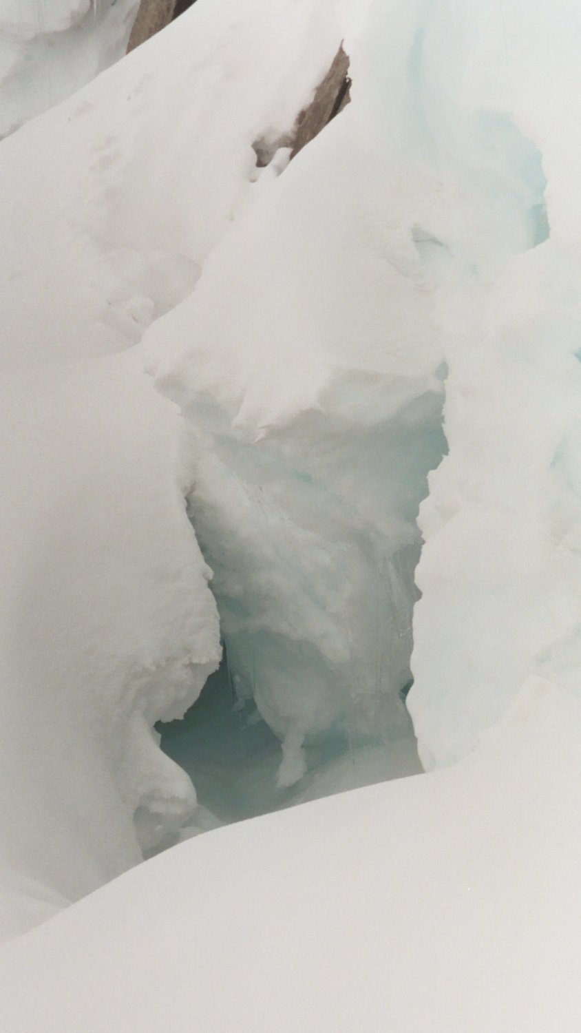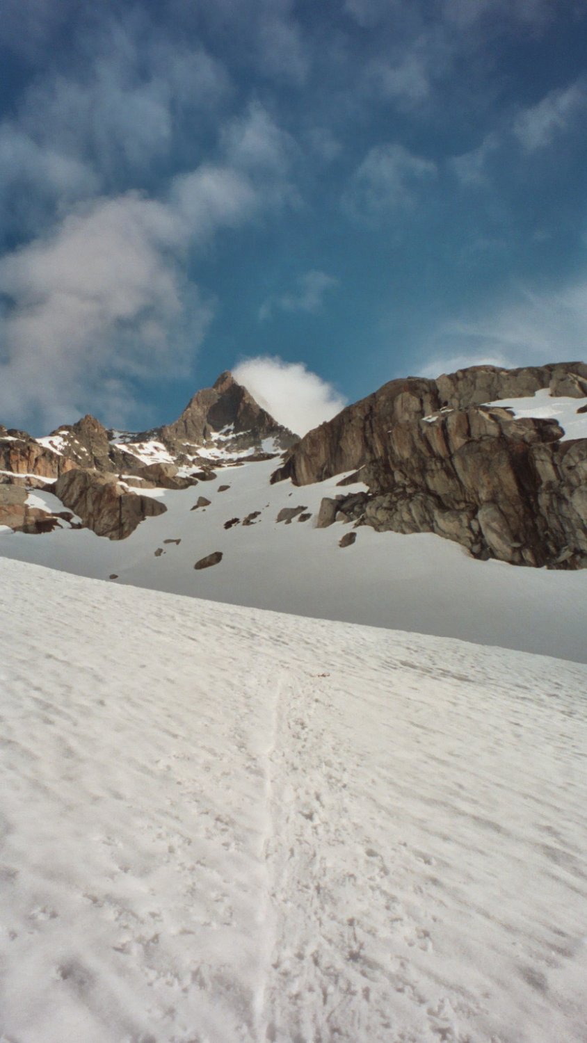 Der Bergschrund beim Skidepot unter dem Galengrat wird bald zum Problem für den Gipfelanstieg.
