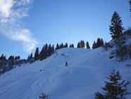 Sollte trotz nachlassender Pulverqualität und mehr Spuren noch eine Weile lohnend sein. Die Südhänge gegenüber am Siplinger- und Heidenkopf sahen schon wieder etwas grünlich aus...