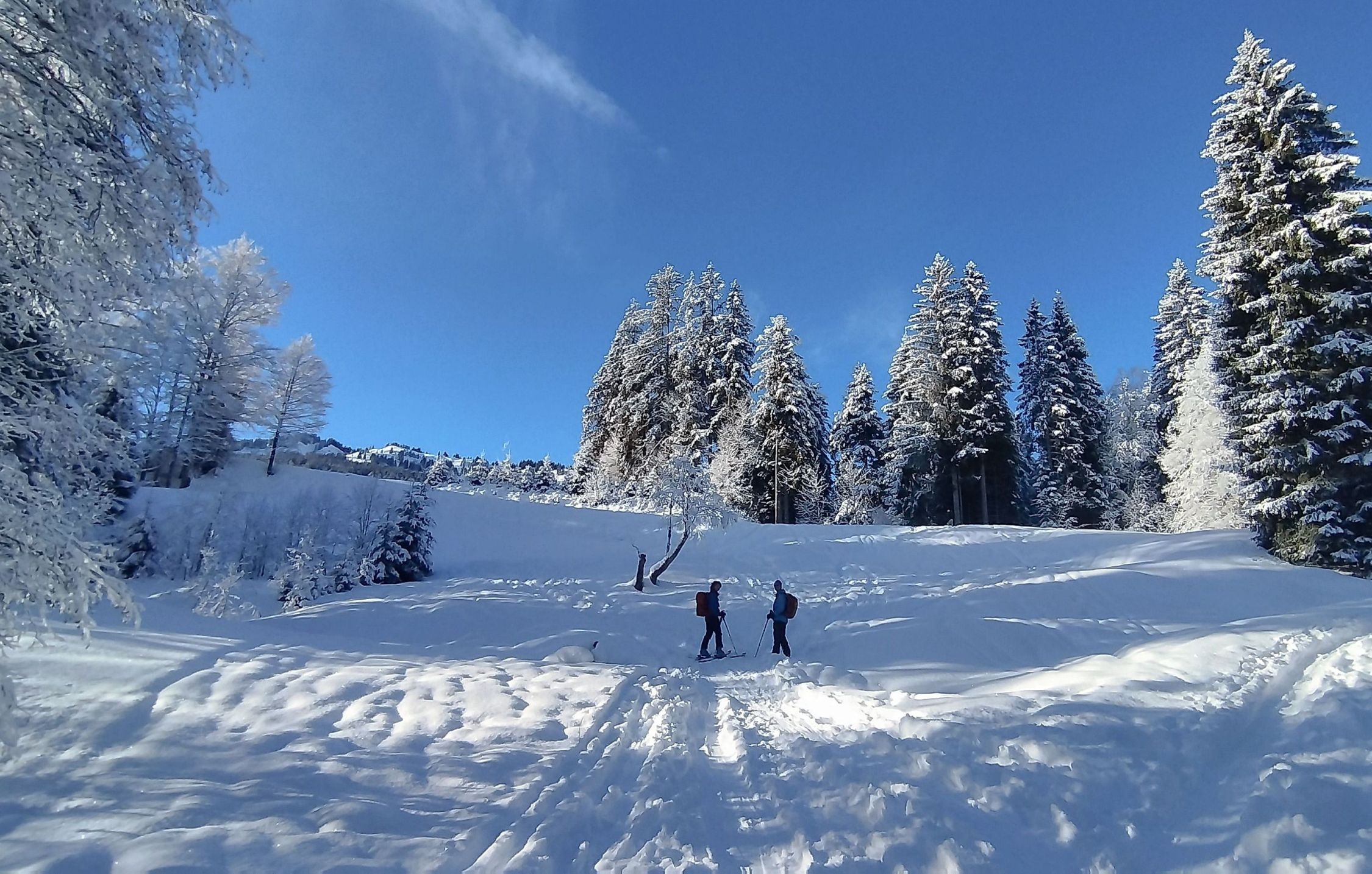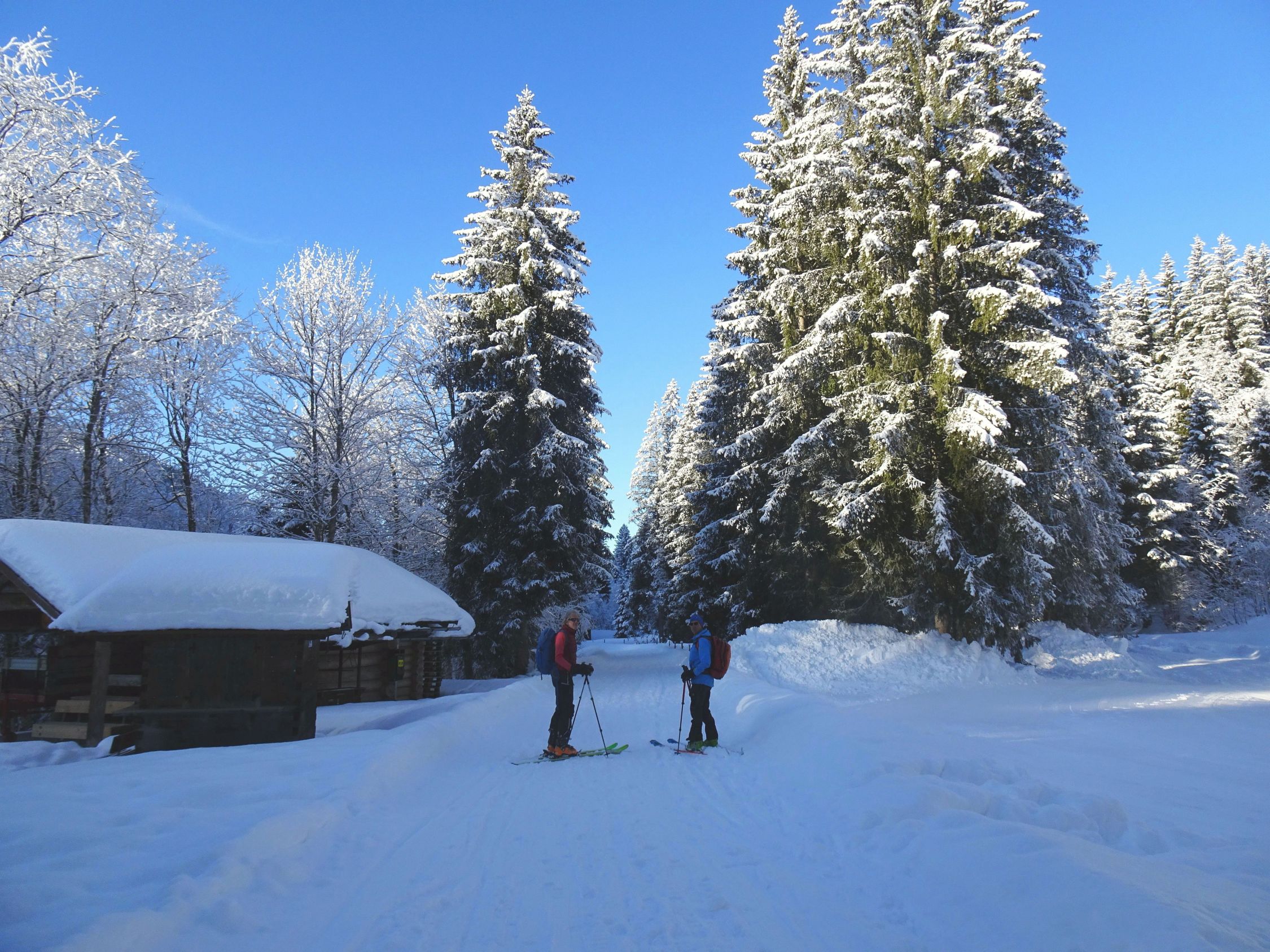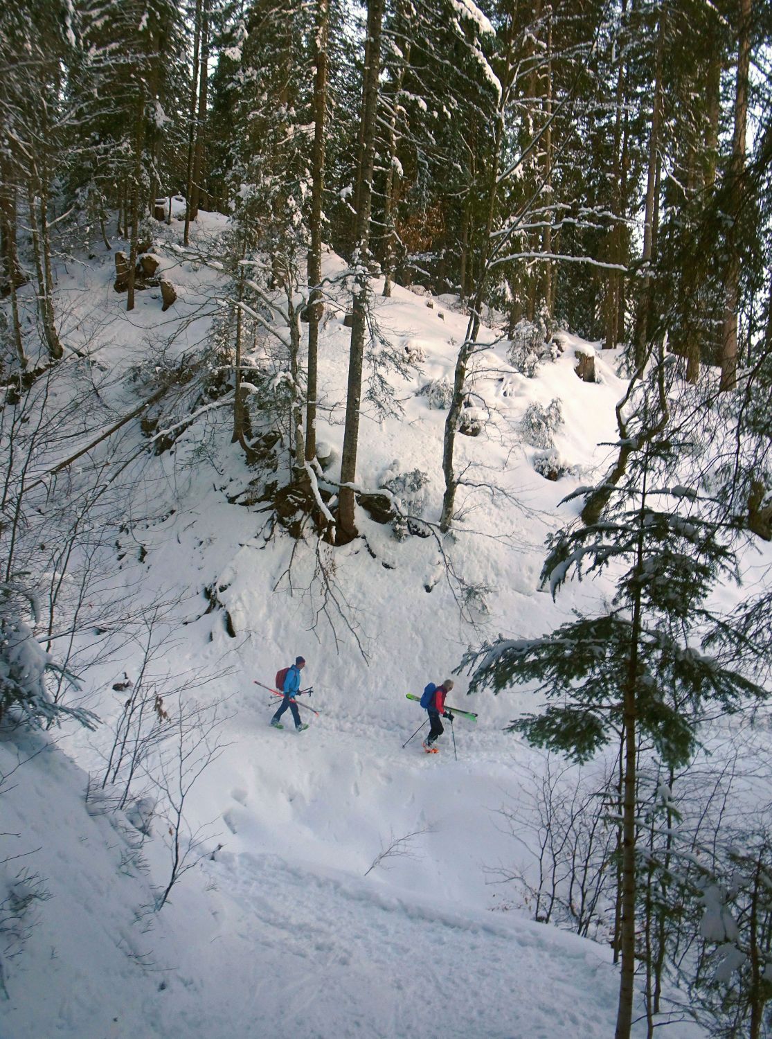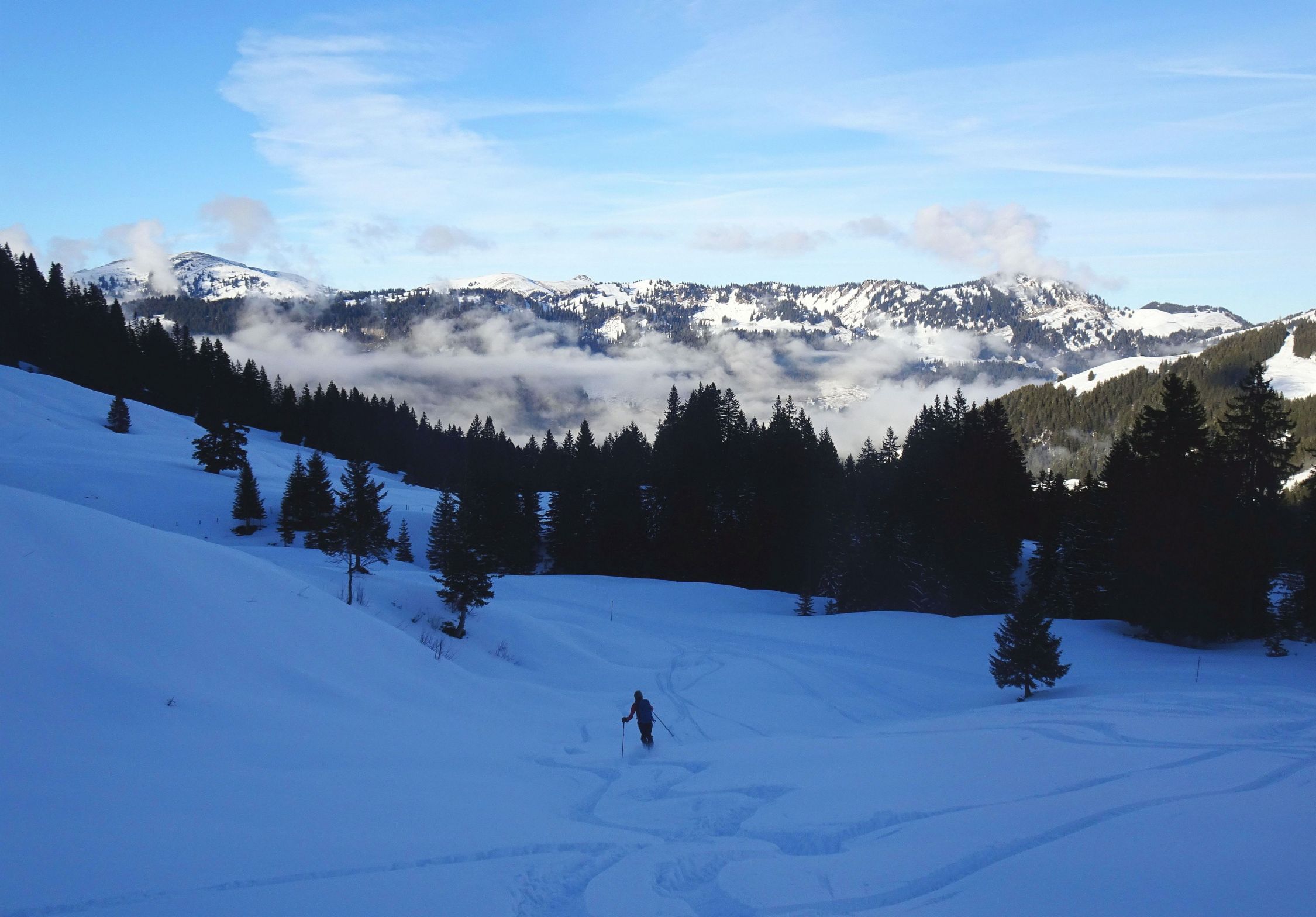 Ausreichend Schnee, auch Waldbereich gut passierbar. 20-30 cm Pulver und vor allem am Nordhang des Burstkopf noch viel Platz für eigene Spuren. Auch am Feuerstätterkopf und bei der Talabfahrt noch schöne Passagen. Grataufstieg heute zu Fuß.