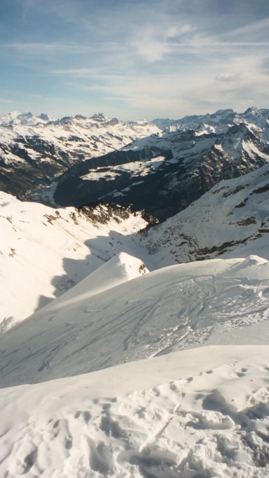 Mit der ersten Seilbahn 07.00 Uhr von Attinghausen aufs Brüsti. Wir beschlossen über die Sommerroute via Chraienhöreli aufzusteigen, daraus wurde aber nichts die Stiegen waren derart vereist das wir umkehrten und in den Kessel von Chulm abfuhren. Von dort steil zum Geissrüggen hinauf wo wir eine Gruppe Gämsen sahen. Die Traverse beim Angistock zum Nussfruttli, war pickelhart gefroren aber gut gespurt. Der Spur unter dem Brunni und Blackenstock durch trauen wir nicht so recht, sie war für uns zu hoch angelegt. Wir queren etwas tiefer um Schneebrettern oder Eisschlag auszuweichen. Als wir den Surenenpass erreichten brach vom Brunnistock eine Lawine los und raste im Staub über den Hang. Vier Tourler die uns folgten konnten gerade noch ausweichen, wahrscheinlich etwas geschockt folgten sie dann unserer tieferen Spur, die bestehende wurde nämlich verschüttet. Wahrlich ein unschönes aber eindrückliches Schauspiel. Am abgeblasenen Grat entlang erreichten wir das Eggenmandli. Umwerfende Fernsicht am Gipfel, wir fuhren direkt vom Gipfel über den Nordost Hang ab. Pulverschnee bis nach Waldnacht, dort angefellt und zur Brusti Abfahrtsroute aufgestiegen. Durch Wiesen und Wald ging's dann flott bis zur Talstation der Brüstibahn hinab.