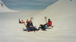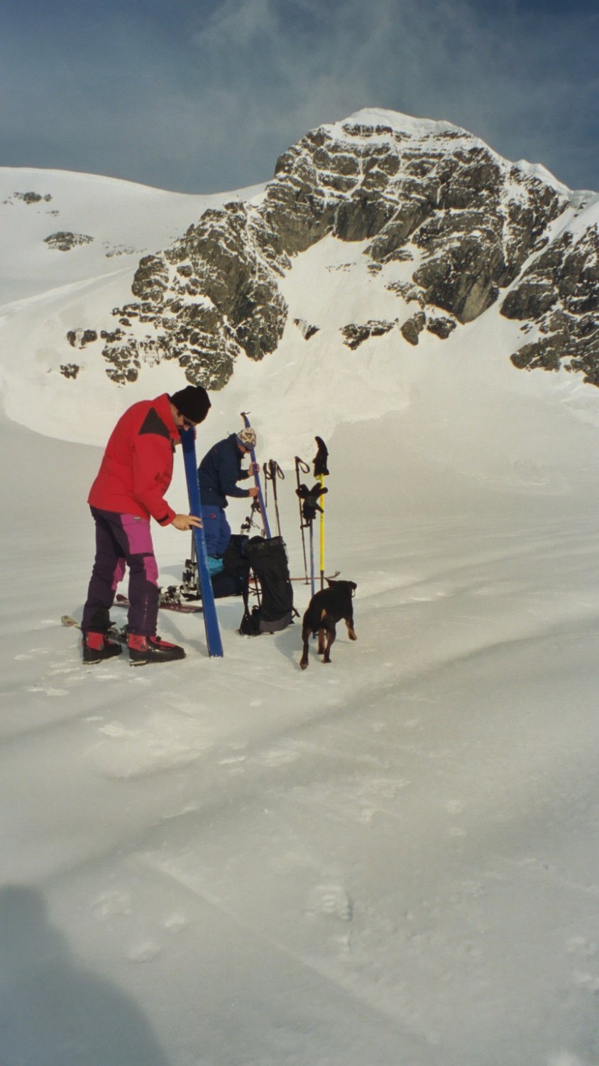 Start der Tour von der Klausenpasshöhe um 05.15 Uhr. Ab dem Tierälpli setzt starker Föhn ein. Unter dem Iswändli Jacke angezogen und Harscheisen montiert heute sinnvoll. Auf dem Chammlijoch hat der Föhn uns fast von den Skiern gefegt. Auf den Hüfifirn abgefahren dort lies der Wind etwas nach. Angefellt und über die Südost Flanke zum Gross Schärhorn hinauf. Eine grosse Wächte versperrte den Weg zur Schärhorn "Griggälä" wir mussten die Skis zuerst über die Wächte schieben, dann uns mühsam hinauf ziehen. Begleitet von Orkan artigen Windböen auf das Gross Schärhorn ein Erlebnis der besonderen Art. Die Abfahrt auf den Hüfigletscher ganz passabel. Noch einmal angefellt und aufs Chammlijoch