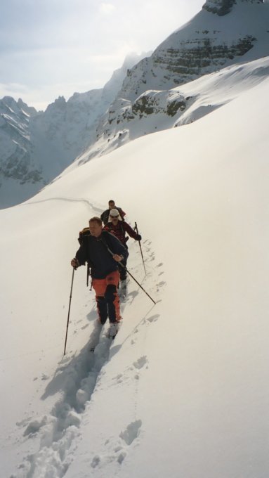 Start der Tour um 06.15 Uhr von Unterschächen bei Nebel und leichtem Schneefall. Durchs Brunnital nach Brunni, dann via Chärschelenwald zum Flösch hinauf. Hier löste sich der Nebel auf blauer Himmel zeigte sich. Wir hatten die Ehre durch das Griesstal zu spuren, über Nacht hat es ca 1.5 Meter Neuschnee gegeben. Zum Glück konnten wir die Spurarbeit unter uns vier aufteilen. Nur kurze Rast auf dem Hoch Fulen Gipfel es war recht zügig und kalt. In der Abfahrt zum Griesstalstein Pulverschnee, (Fast zu viel) von dort nach Brunni hinab ein Mix aus Pulverschnee und Bruchharsch. Im Brunnibeizli noch ein Most getrunken. Auf der verschneiten Brunnistrasse nach Unterschächen zurück.