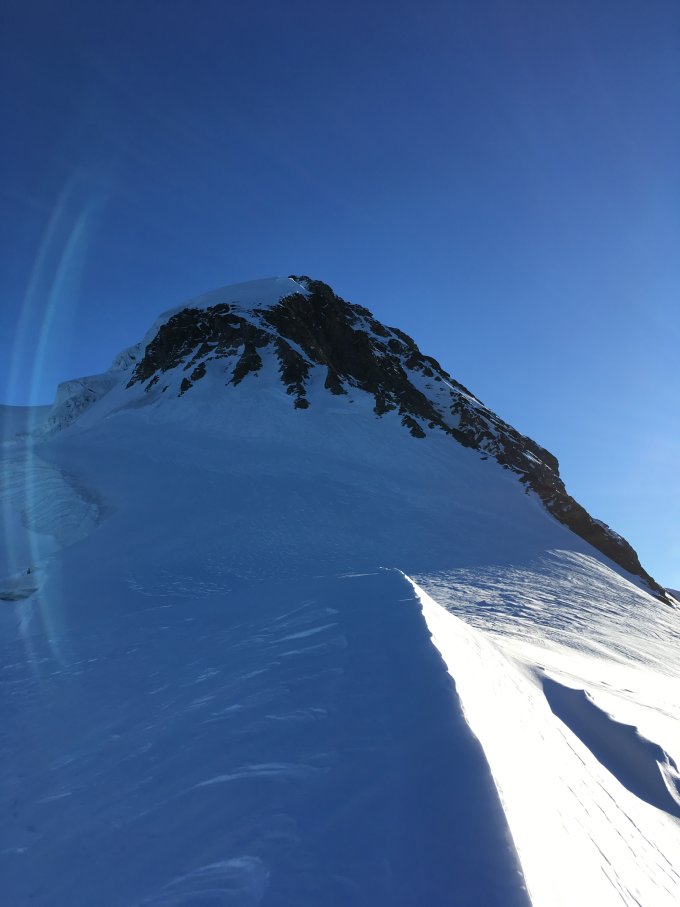 Zustieg zur Rottalhütte problemlos. Die Hütte ist super eingerichtet, ein Besuch lohnt sich auf jeden Fall. Von der Hütte weg findet man den weg auch im Dunkeln gut (Marienkäfer). Immer wieder schöne Felskletterei. Mit Benutzung der Fixseile sind auch diese Stellen gut zu meistern. Das Firnfeld ab Punkt 3790 zieht sich etwas in die Länge, vor allem da sehr viel weicher Schnee lag, was dann sehr viel Kraft kostet. Allgemein hat es gut Schnee, so können die Felsen auch teilweise im Schnee umgangen werden, aber die Felsen sind fast alle tocken und gut kletterbar.