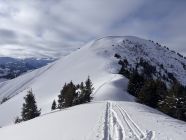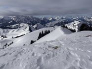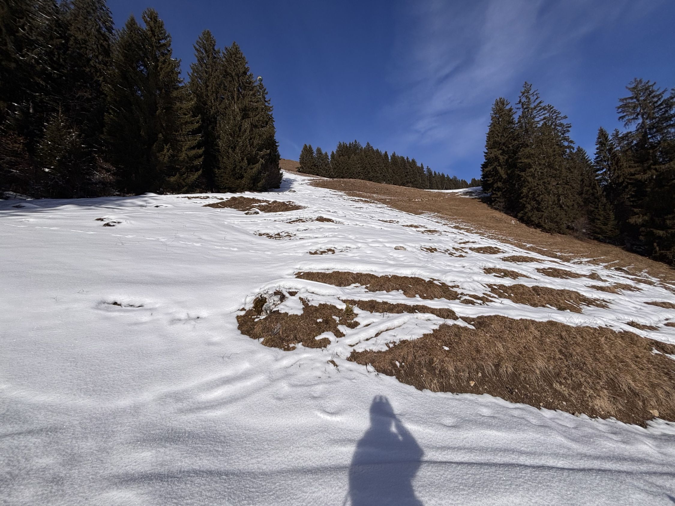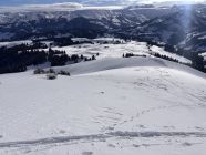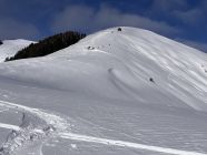 Zufälligerweise fand heute ein Skimo-Rennen am Jaunpass statt, die Runde führte zum Vorgipfel des Hundsrüggs. Nach diesem Punkt war ich alleine auf der Route. Wer sich ein Bild des Rennens machen möchte, hier der Link: