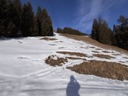 Talabfahrt Zweisimmen: Unterhalb Pkt. 1'359m Heimchueweid muss den schattigen Stellen gefolgt werden, dann ist die Abfahrt knapp bis Zweisimmen möglich - allerdings mit unvermeidbarem Steinkontakt. Ich habe die Skis unterhalb des Allmiweidlis ab ca. 1'055m zum Bhf 2simmen getragen.
