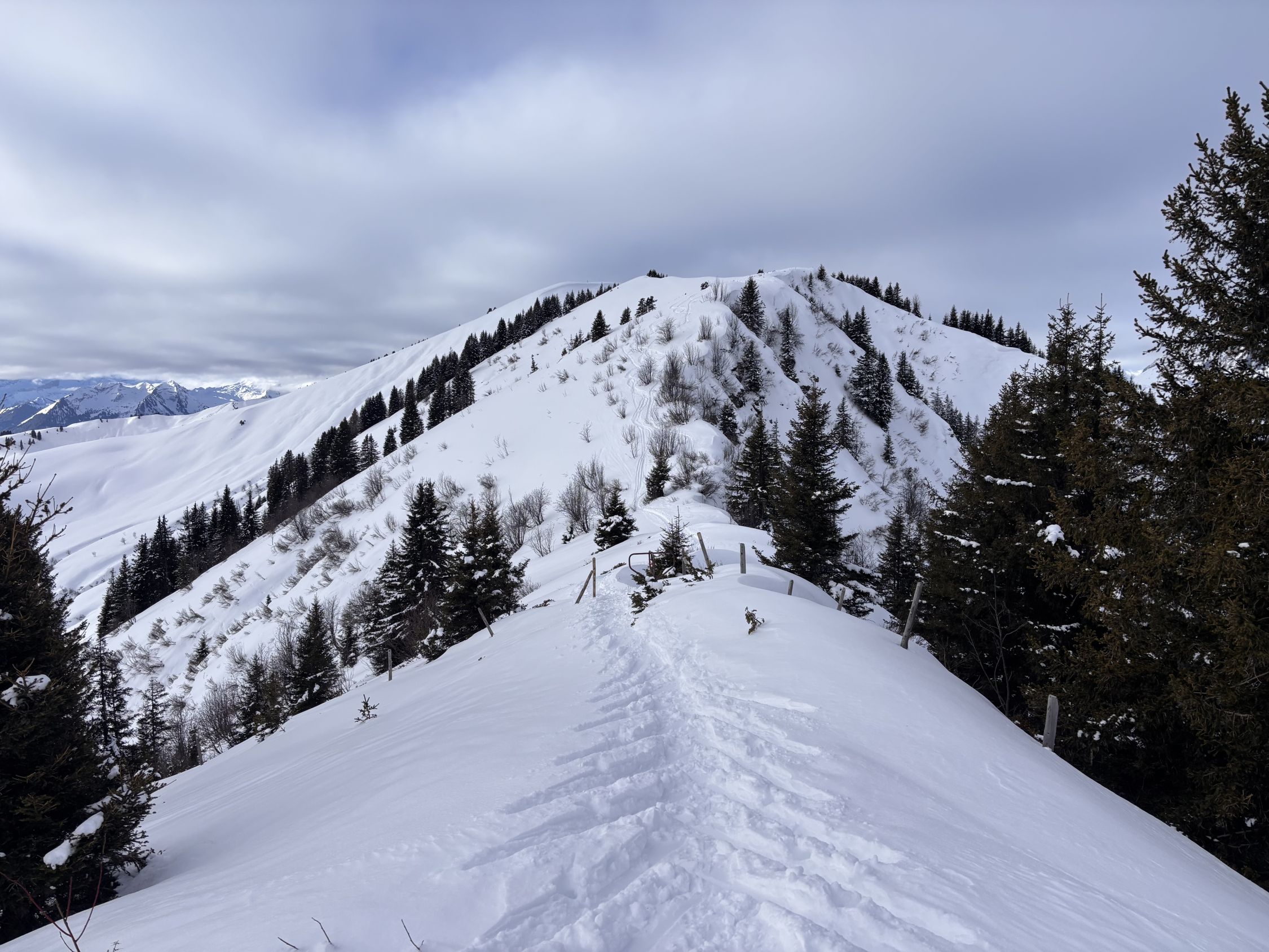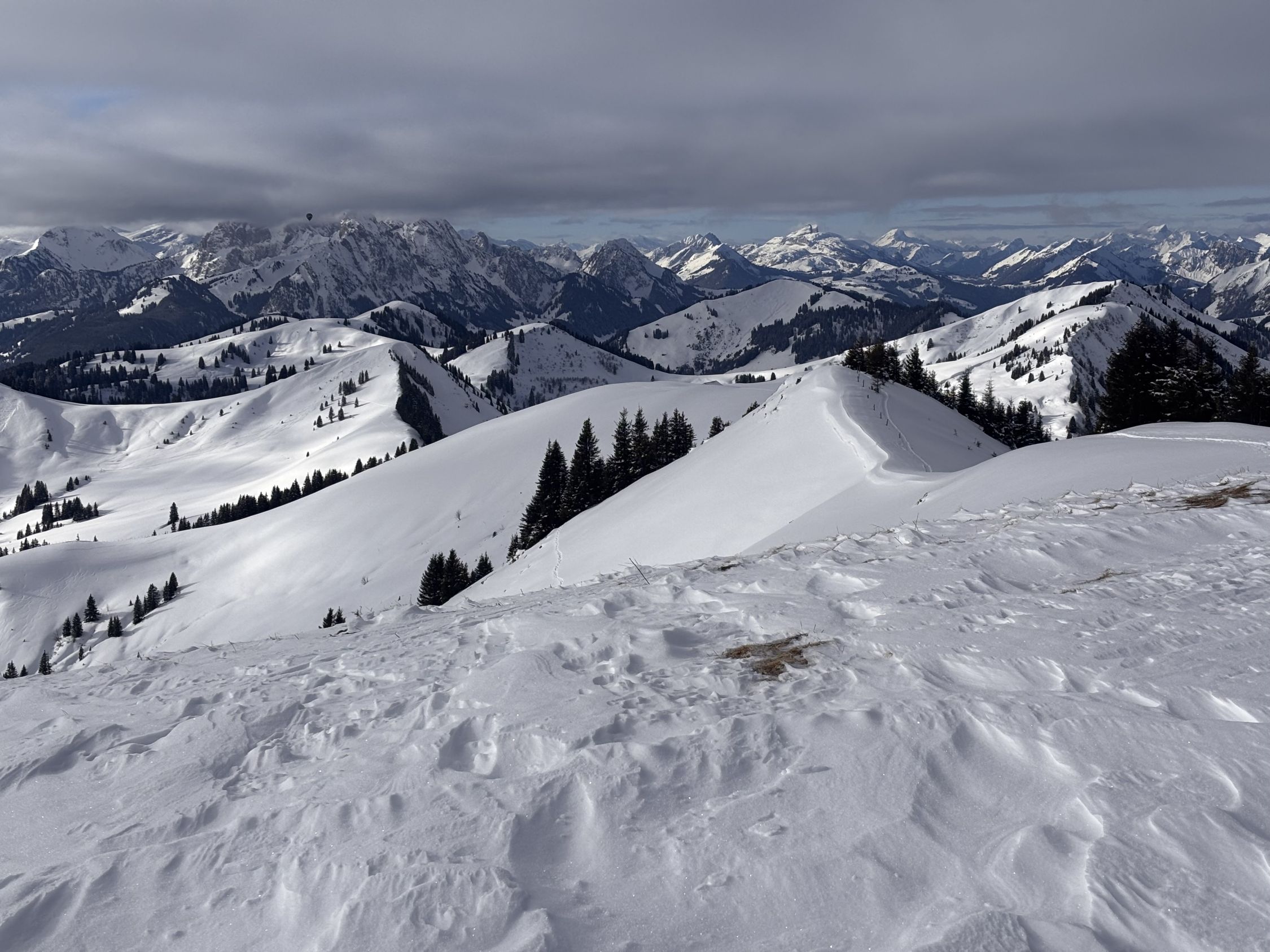 Der Pulverschnee hielt sich über die letzten Tage erstaunlich lange frisch, ggf. wird er künftig etwas schwerer. Die Passage unterhalb 1'359m nach Zweisimmen wird in den nächsten Tagen nicht besser...