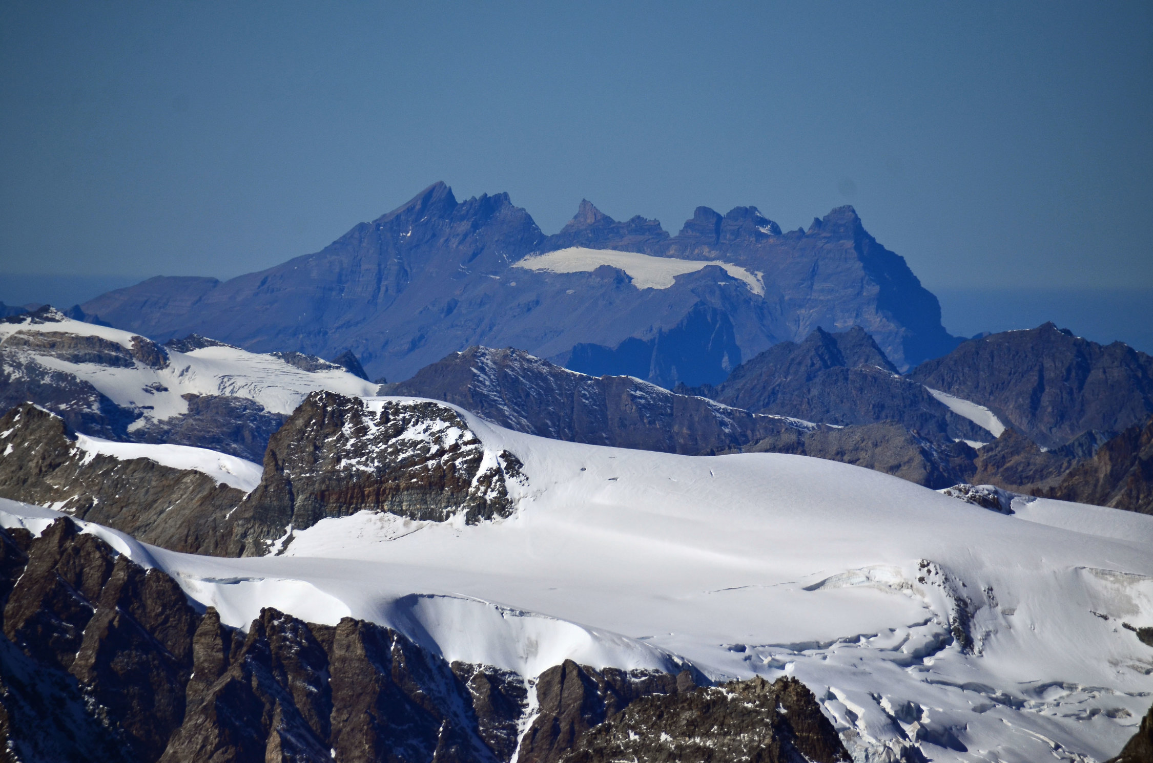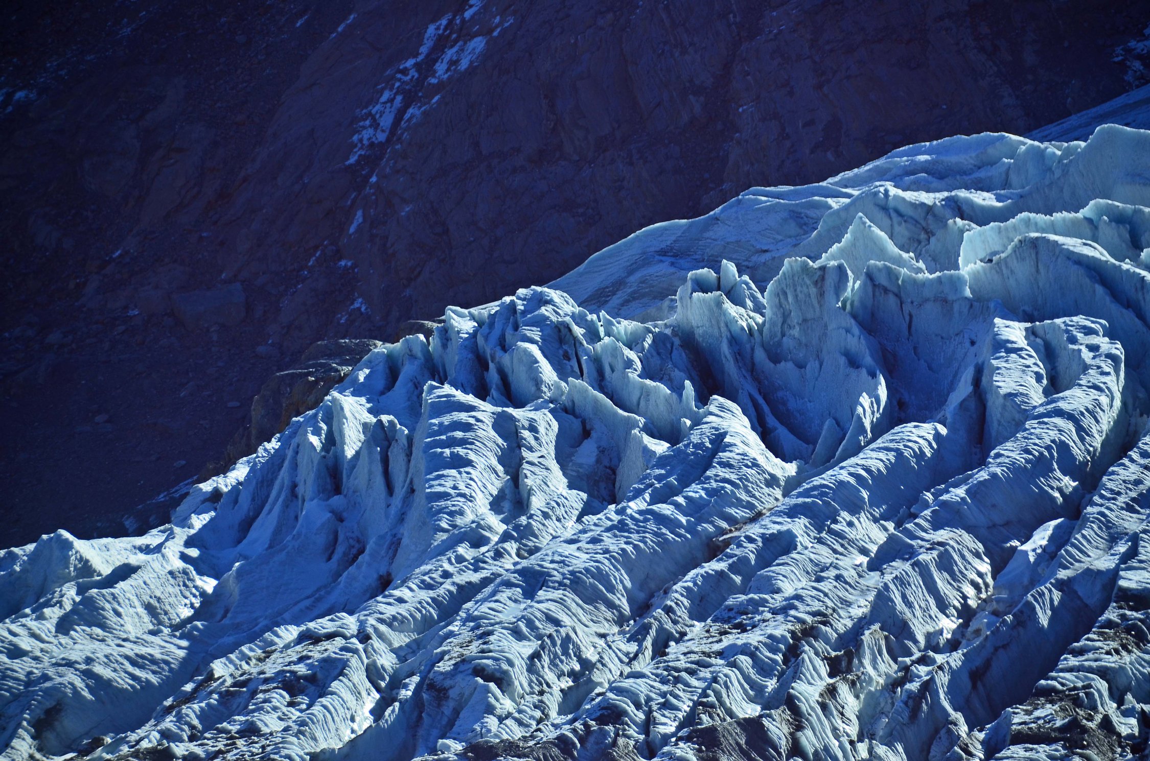 Als Kind habe ich auf den Theodulgletscher im Sommer skigefahren. Nun ist statt eine Firndecke Blankeis mit vielen Spalten zuvorgetreten (unterhalb Testa Grigia).