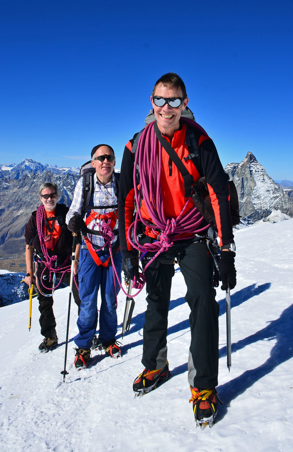 Dann klappte es trotzdem noch für eine kleine Tour! Obwohl die Gondeln der Klein Matterhorn Bahn voll waren, gabe es wenig Bergsteiger. Ein gutes halbes Dutzend Seilschaften waren unterwegs sodass es angenehm war.