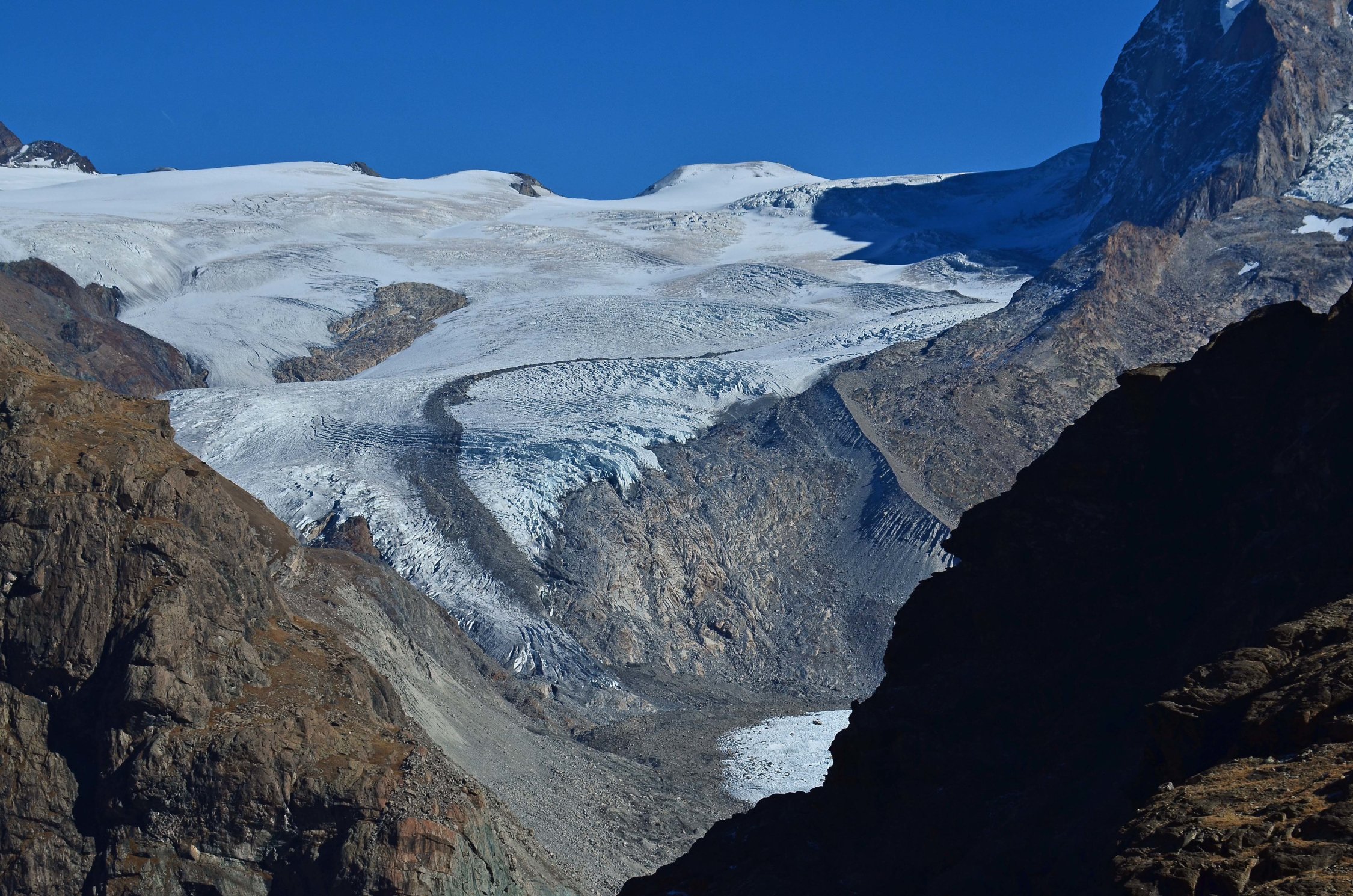Der Gornergletscher und der Grenzgletscher haben fast keinen Kontakt mehr...