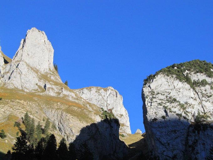 Abweichend von der Routenbeschreibung sind wir von Brülisau über die Sämtiser Alpen und Bogartenlücke zur Alpe Obere Mans aufgestiegen. Ab dort weglos Richtung Südgrat gemäß Routenbeschreibung.