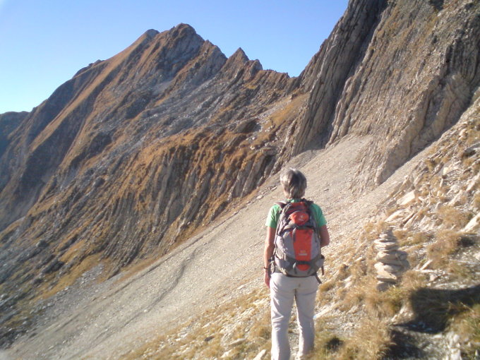 Wunderbares Herbstwetter. Trockene Verhältnisse auch in den steilen Grasnarben.