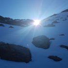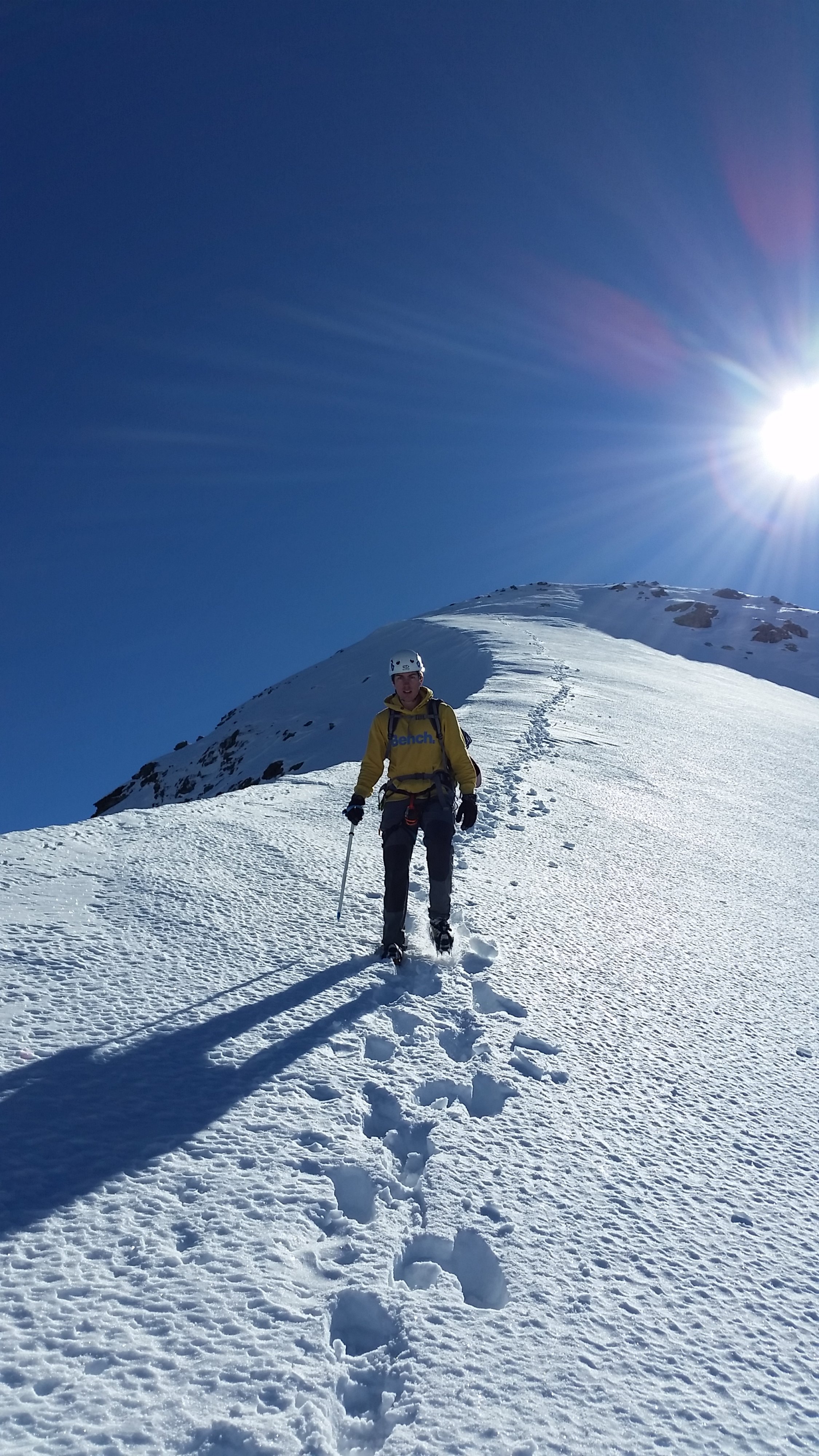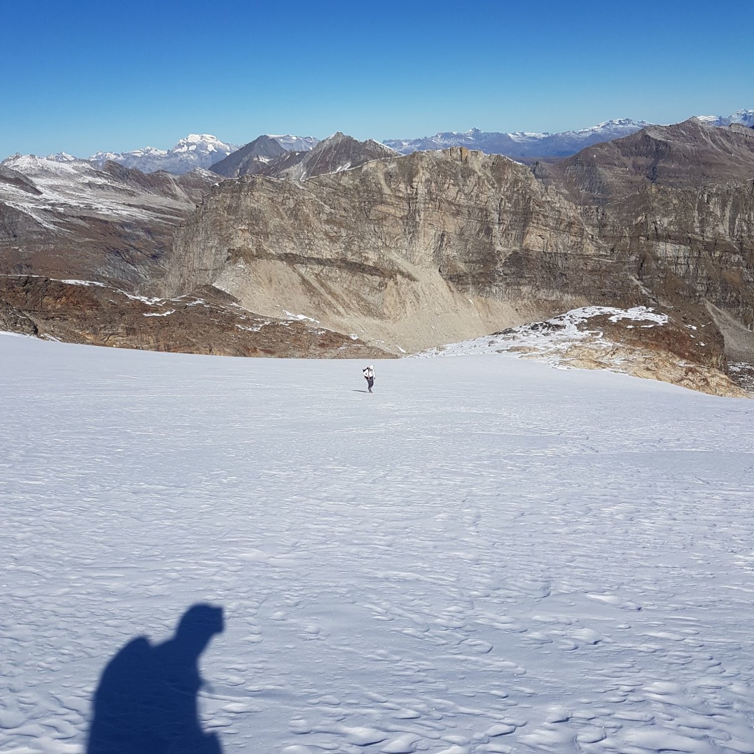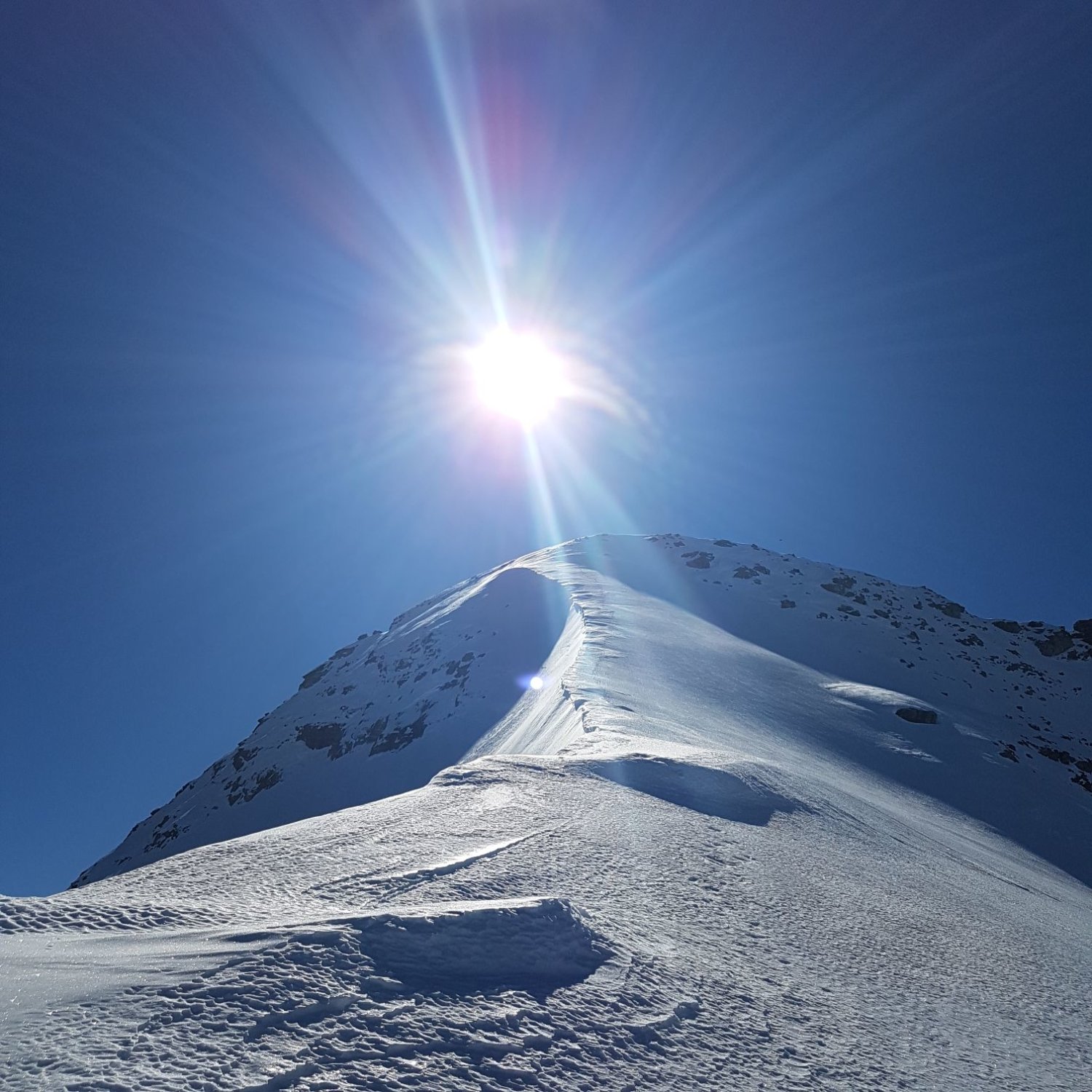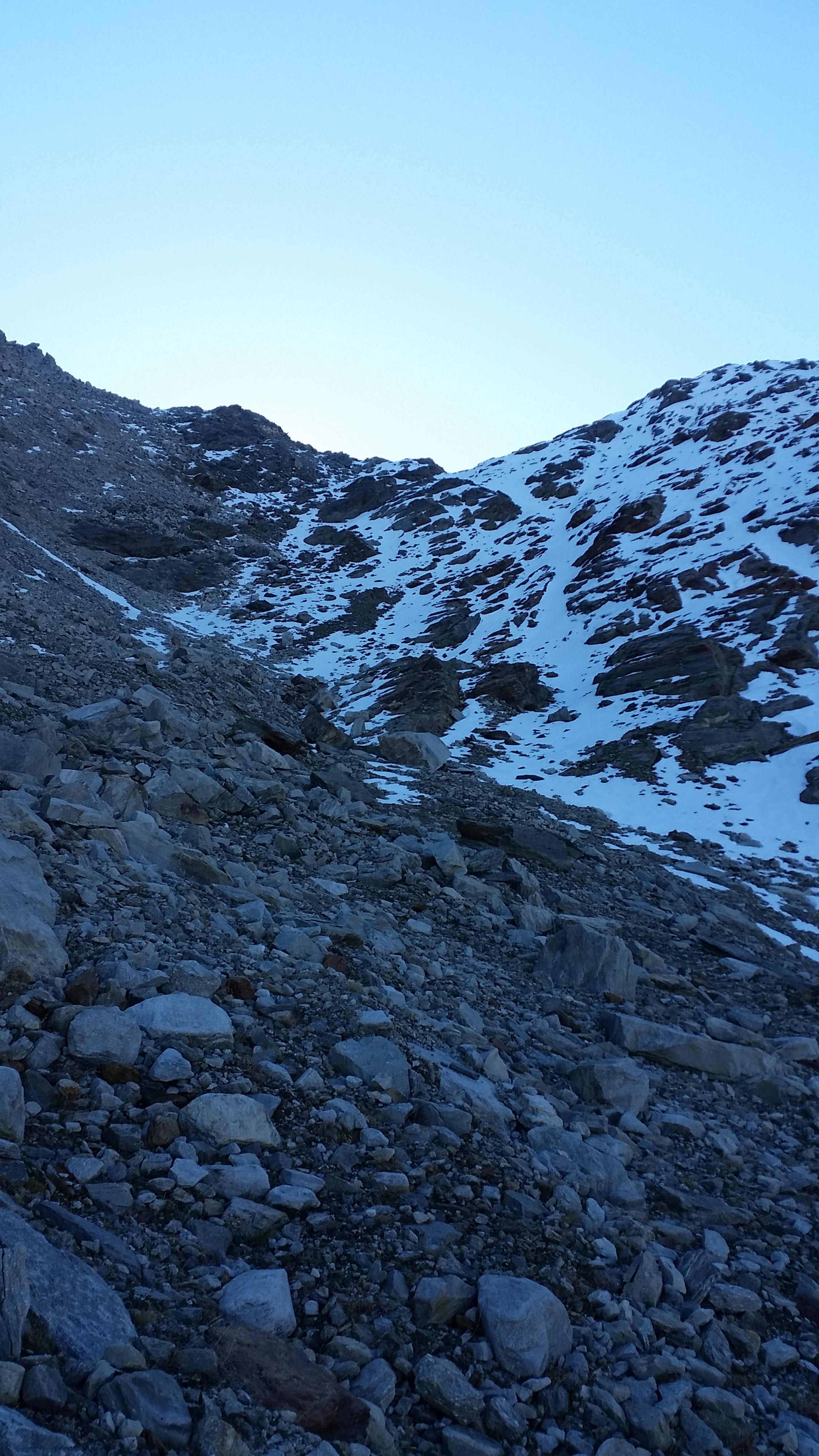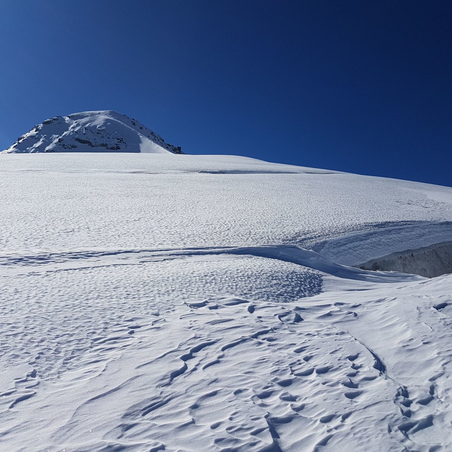 Bis Läntahütte mit MB; Aufstig zur Güferlücke über Wanderweg Furggelti bis zum Bachverlauf der zur Güferlücke führt dies auf Steine und vor Güferlücke auf Schnee. Kurzer Abstieg auf Gletscherzunge ca. 100 Höhenmeter. Restlicher Aufstieg bis zum Gipfel über den Güfergletscher bei besten Bedingungen mit zum Teil Pulverschnee einfach erreichbar. Gletscherspalten waren Problemlos zu umgehen und gut sichtbar. Für den Aufstig ab Güferlücke waren wir mit Steigeisen unterwegs da zum Teil örtlich noch harter Untergrund herrschte.