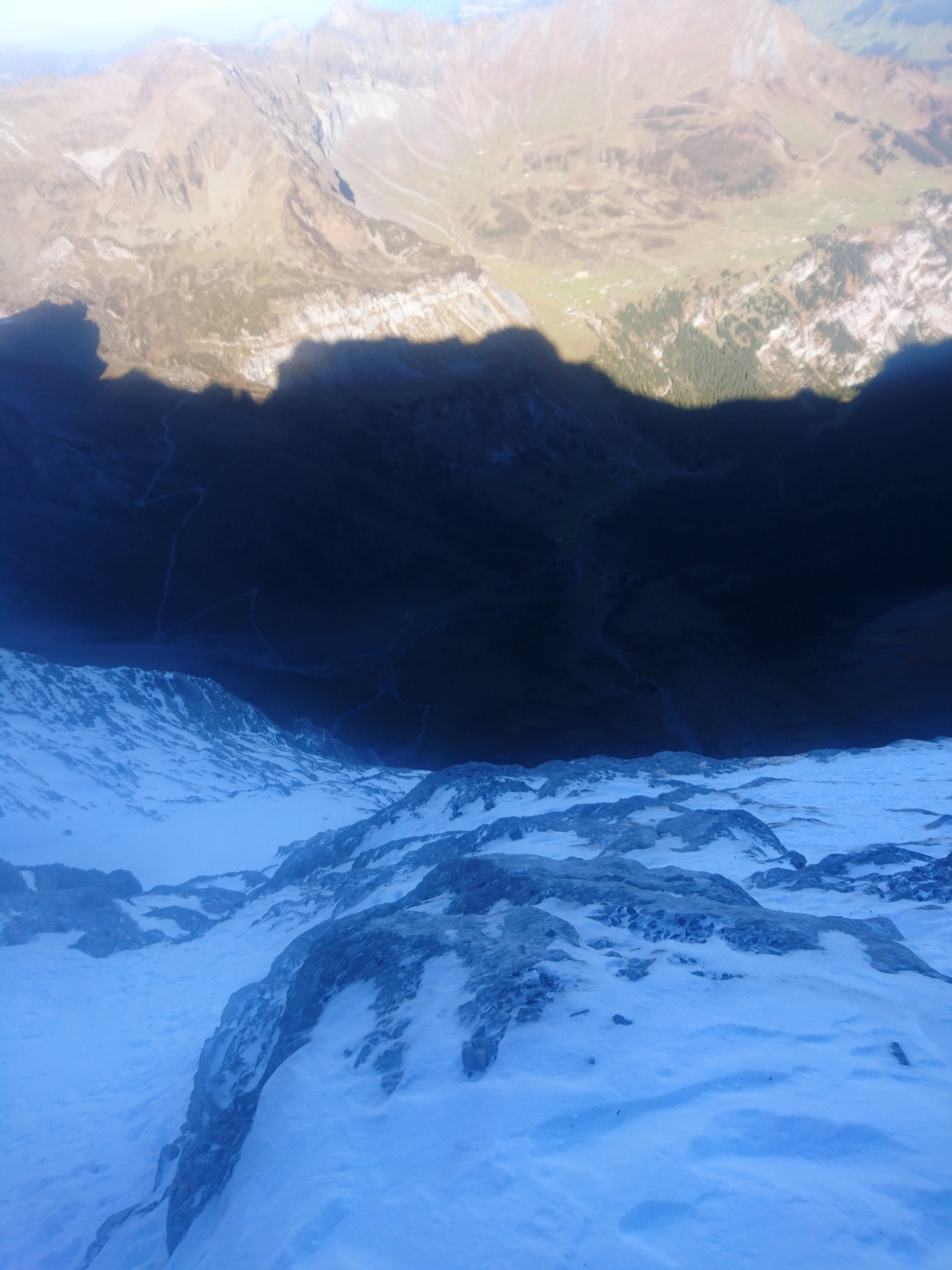 Der Absteig im Ruchenchälen hat bis etwas 2000 m.ü.M. durchgehend Schnee was den Absteig sehr erleichtert.