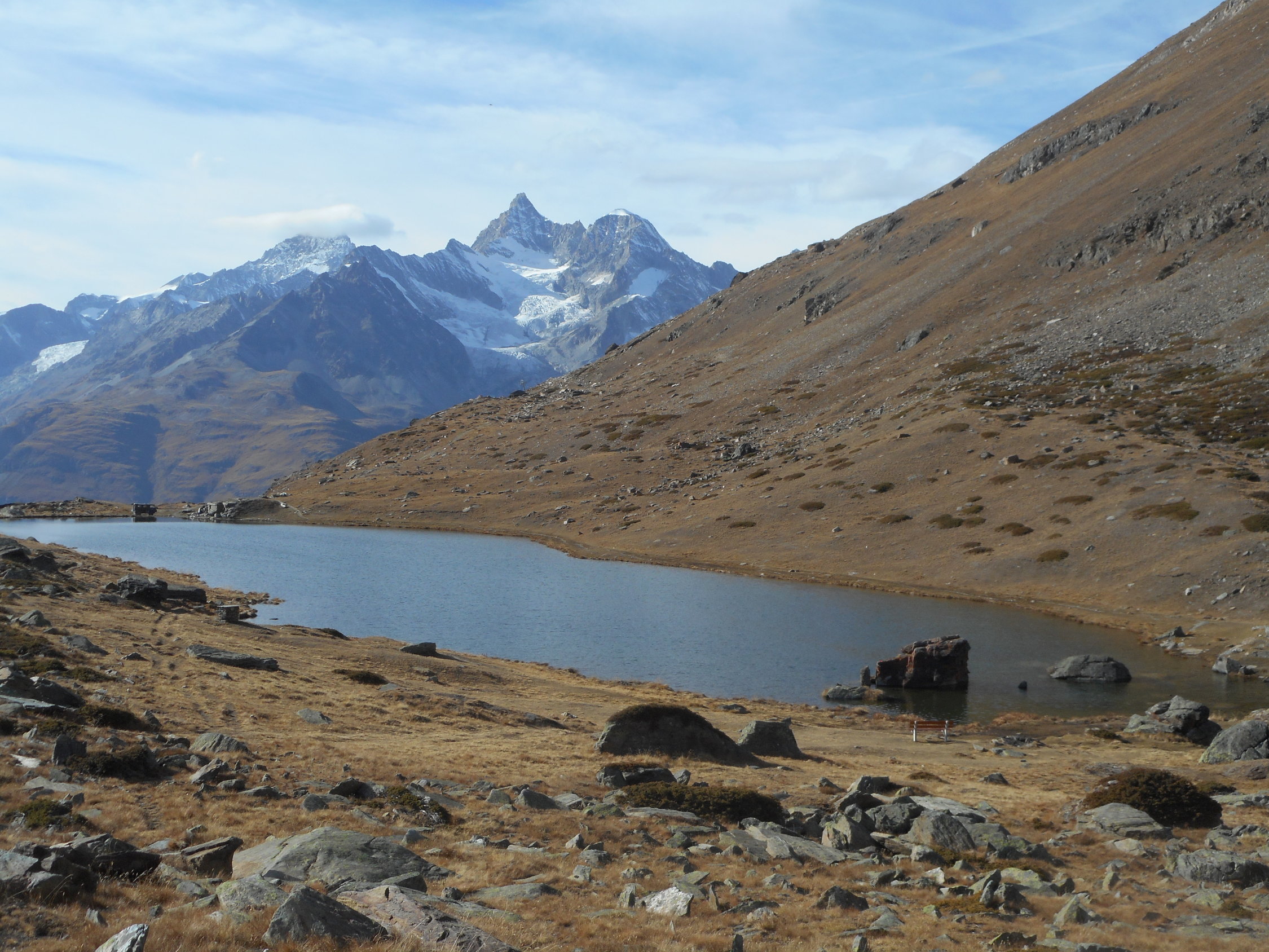Als Walliser war diese Tour für mich auch neu. Grossartige und einsame Alpine Wanderung von der Täschalpe nach Zermatt. Umringt von der Königskrone der Walliser Viertausender, bietet die Tour grandiose Weitblicke. Die 4000er sind zum Greifen nahe. Wir haben bis zur Flualpe niemanden getroffen, ausser ca. 170 Gemsen auf der Täschalpe. Sowas haben wir in 45 Jahren Bergsteigen noch nie gesehen.