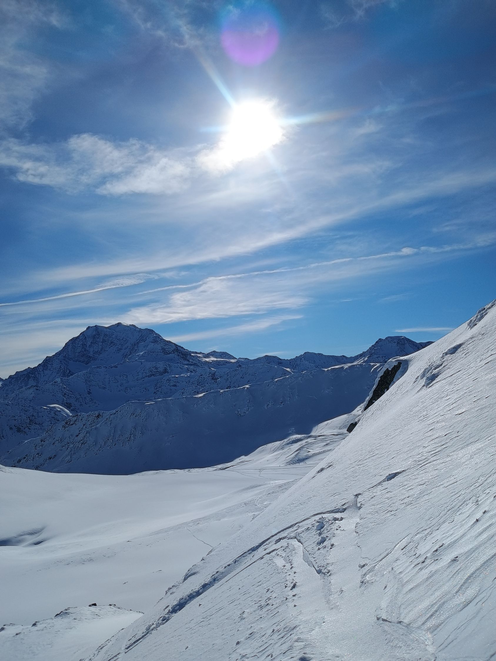 Danach noch auf dem Staldhorn gewesen, ist nun auch gut eingeschneit und gut fahrbar. Ganz selten mal Steinkontakt, man muss schon ein bisschen aufpassen.