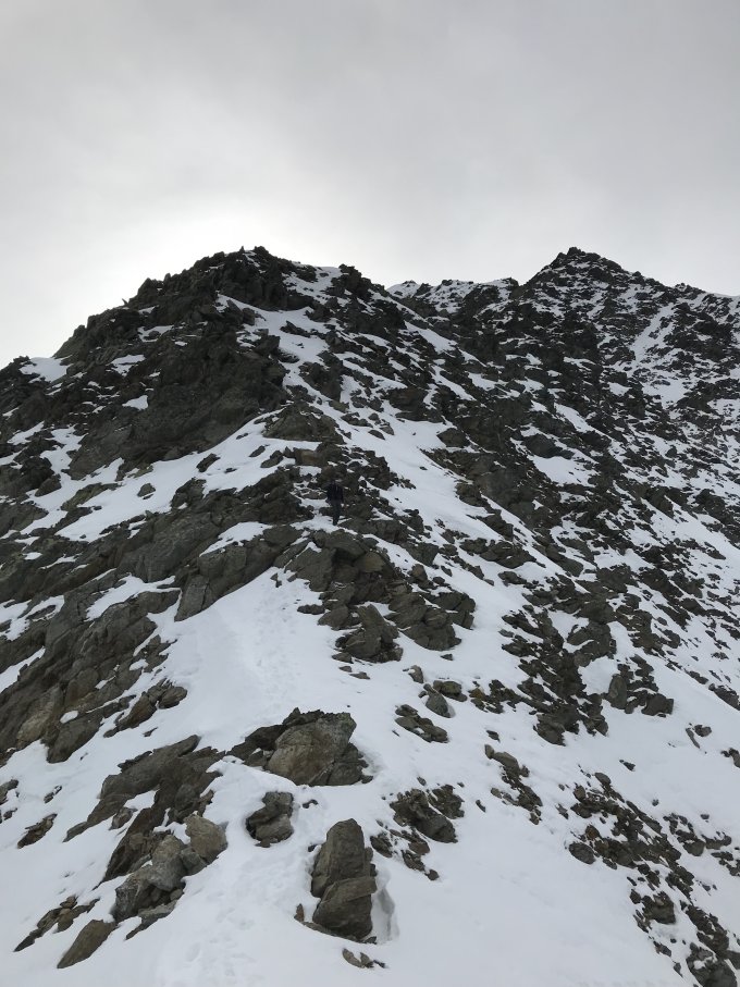 Man sollte genug Zeit einplanen, da momentan schon recht viel Schnee im Grat drin liegt. Wir haben daher für den Abstieg fast genau so lang benötigt wie für den Aufstieg.