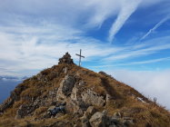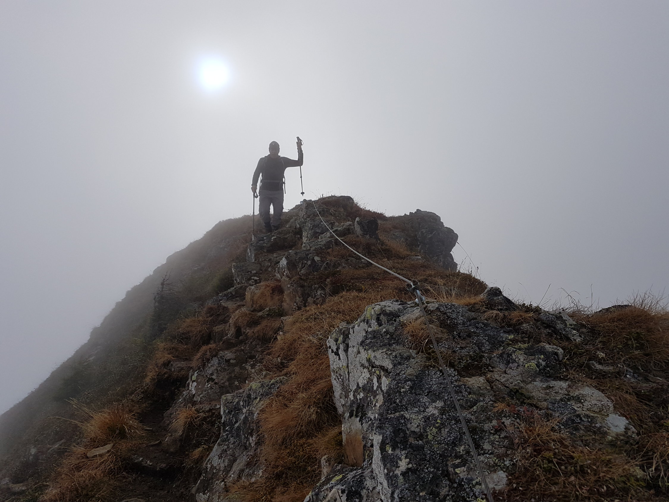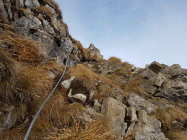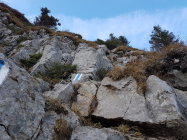 Der Auf/Abstieg ist seit einiger Zeit blau-weiss markiert, mit drei Schlüsselstellen die etwas ausgesetzt sind, zwei davon mit Drahtseilen abgesichert.