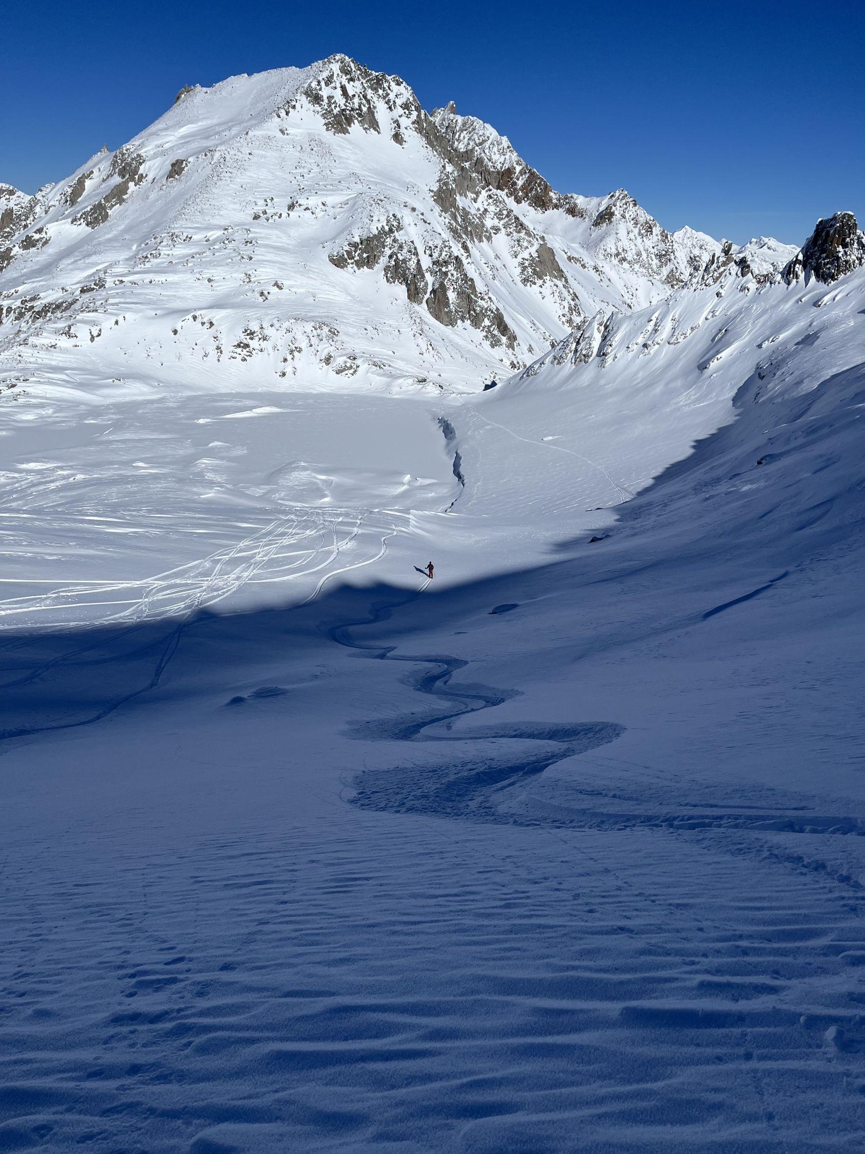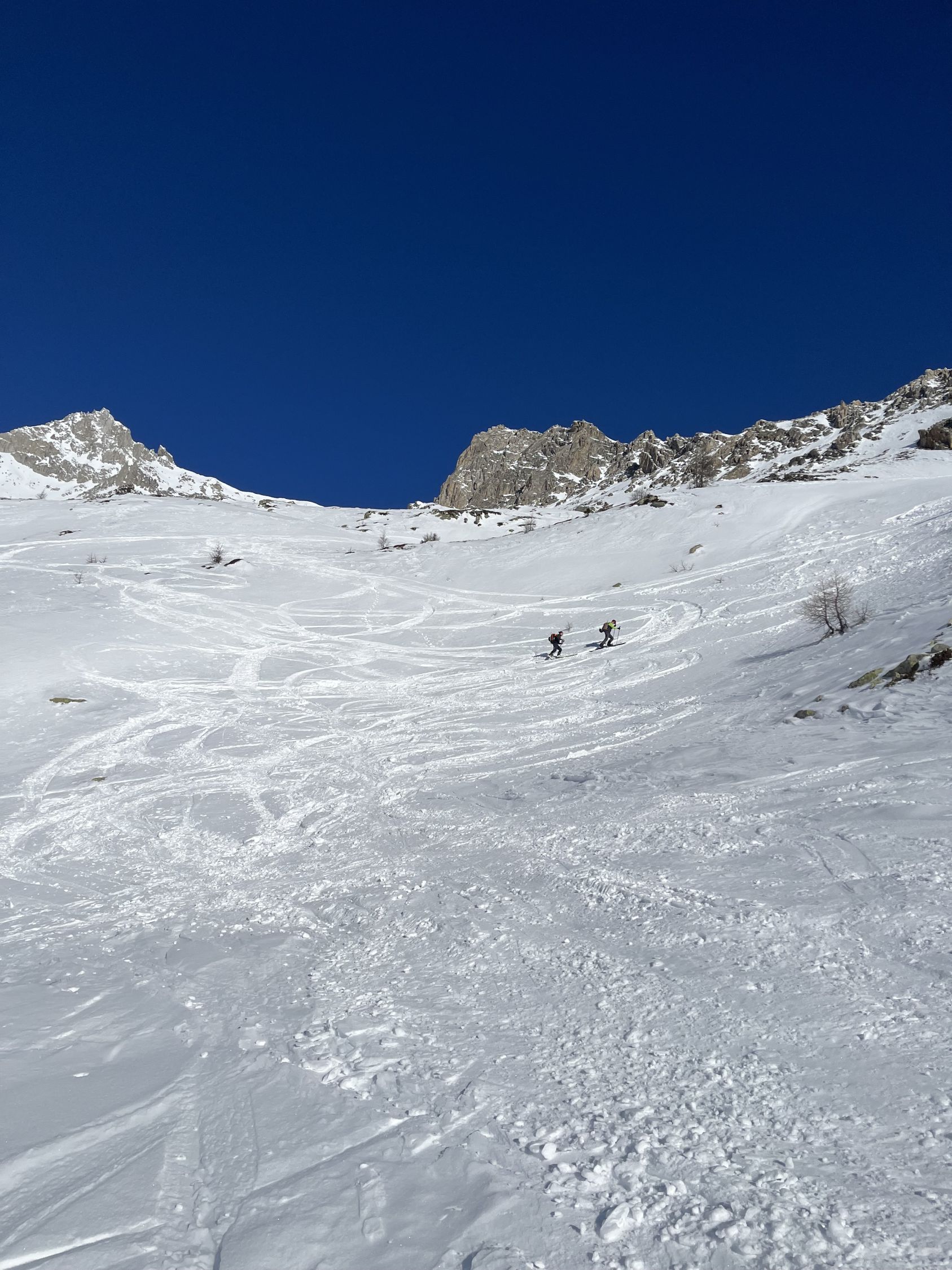 Von der Pianseco-Hütte an herrschen sehr gute Schneeverhältnisse bis zum Gipfel, nur bei der Abfahrt wurde der Schnee unterhalb ca. 2400m weich und schwer, was sich wegen der Südexposition kaum vermeiden lässt. Die Lawinengefahr auf den Südhängen des Bedretto-Tals, insb. unterhalb des Gerenpasses, scheint kleiner zu sein als die aktuell geltende Stufe 3=.