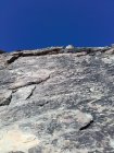Zum Teil können auch zwei Seillängen zusammen genommen werden, je nach Seillänge, die man verwendet. Die Route ist sehr direkt angelegt und somit hält sich der Seilzug in Grenzen. Wir waren mit einem 70 Meter Einfachseil unterwegs.