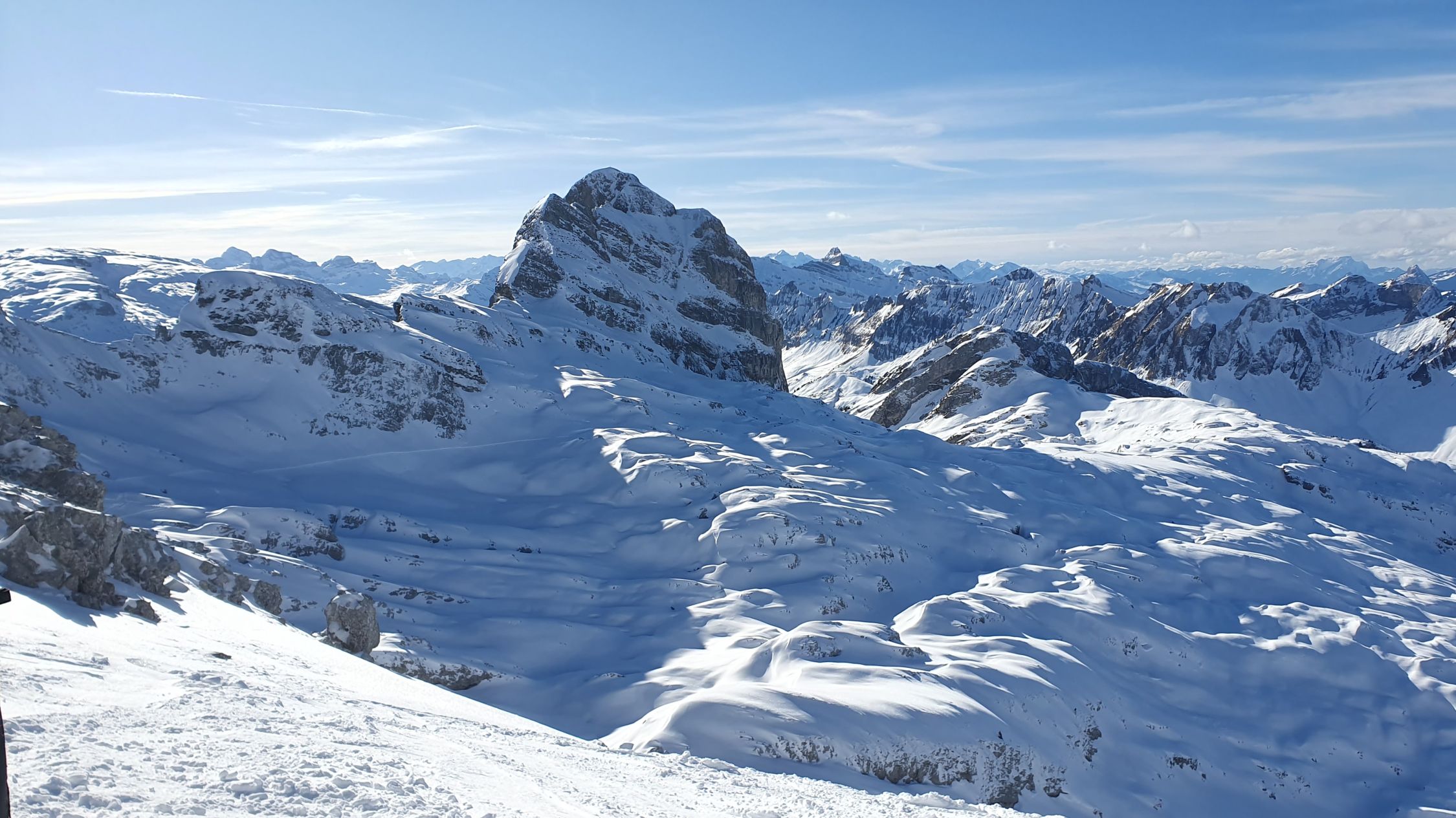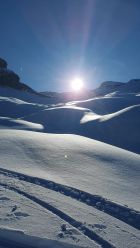 Anfangs noch Wolken, zeigte sich später wie vorausgesagt die Sonne und auch das wurde nach gestern (auf der Isisizer Rosswies) ein Traumtag im Schnee und der schönen Bergwelt. Mit wenig Wind.