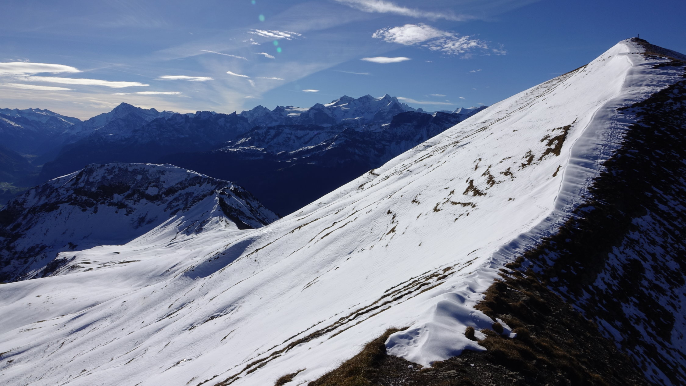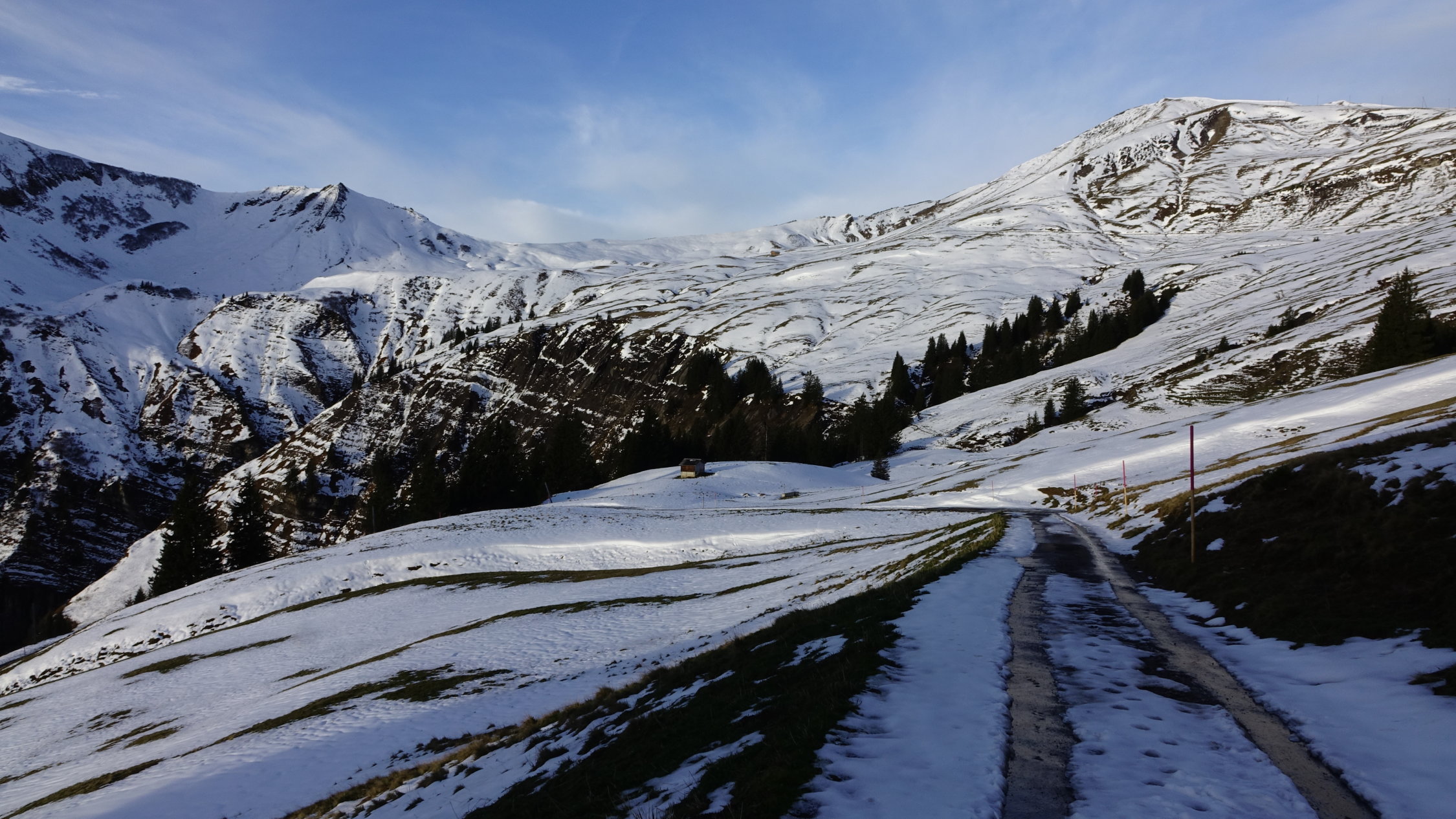 Ich bin direkt von Schönbüel über die Ostflanke aufgestiegen. Nach weiteren Schneefällen ist dieser steile Hang sicherlich nicht unkritisch. Man müsste dann den Bogen über Biet ziehen. Abstieg über Heidenboden ins warme Sörenberg. Der Schnee hat sich generell sehr gut gesetzt.