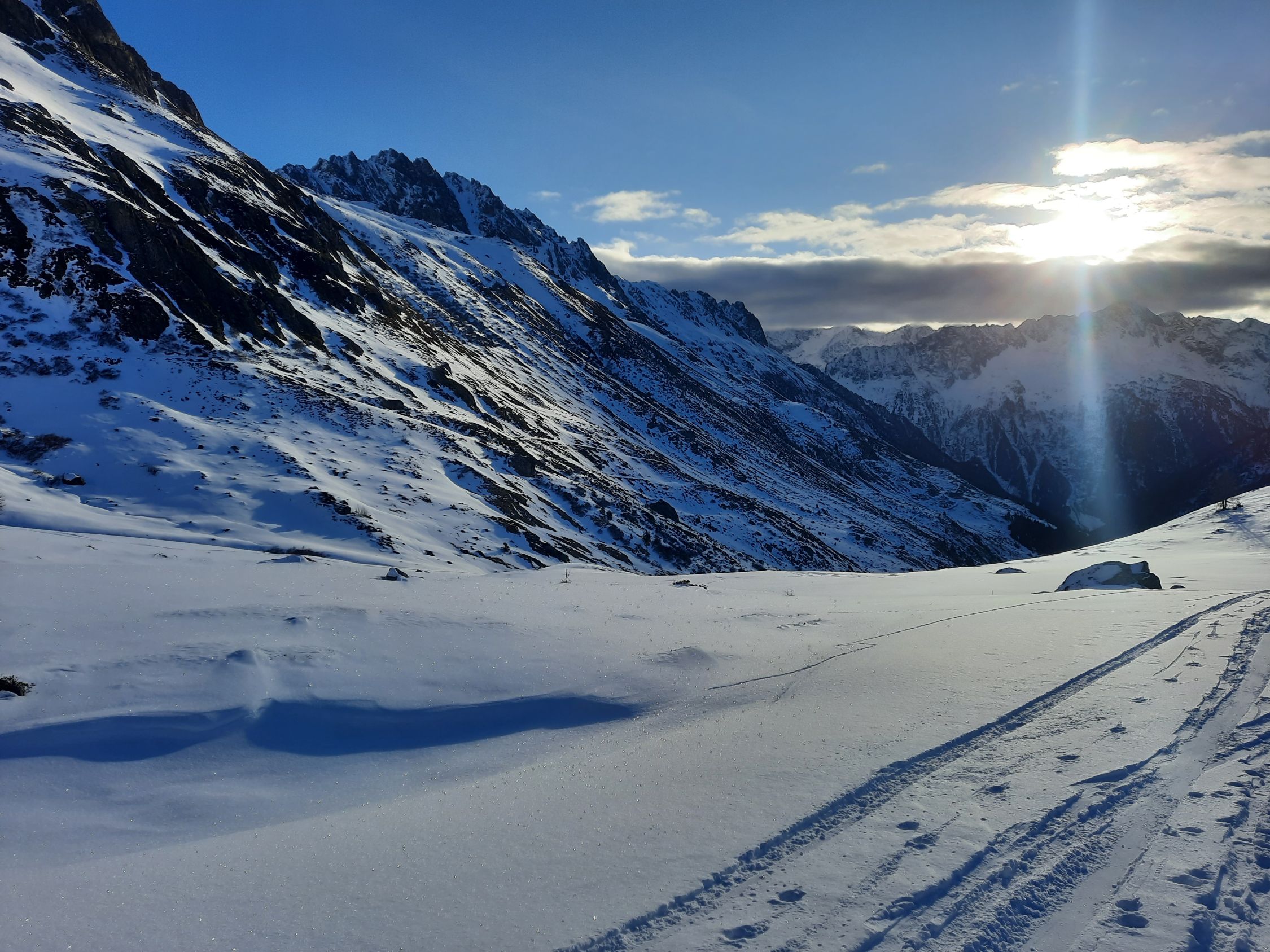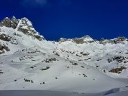 Viel los am Startpunkt. Guter Schnee und erstaunlich ruhig in der Seewenalp- Stöss. Unten ca. 15cm und weiter oben bis 30cm Neuschnee. Von der Passstrasse auf den Wanderweg abgebogen. Viele Tourengeher Richtung Wissgand. Im Färnigwald gute jedoch rutschige, eisige Spur. Die Aufstiegsspur ist auf dem ganzen Aufstieg gut. Die beiden "Steilstufen" von der Seewenalp auf den Seewenstöss und Seewenstöss- Seewenzwächten-Plateau problemlos. In grossem Bogen über den Seewenzwächten Gletscher zum Splitboarddepot und mit Steigeisen auf guter Trittspur bis zum Gipfel. Die Überschreitung zum Zwächten auch gespurt, ev. von Samstag. Mit Ziel Bächenstock nur 4 ev. 5 Personen gezählt. Die Abfahrt vom Seewenzwächten direkt auf die Seewenalp bei gutem Pulverschnee und weiter Richtung Märzenstafel- Rinderstein mit härter werdendem Pulver/ dann kurz Sulz/Hart bis zur Passstrasse mit einigen Minuten Laufeinsatz, da im steilen Gelände kein Schnee vorhanden. Eine Abfahrt par excellence mit Ausnahme von Märzenstafel, danach via Passstrasse zum Startpunkt laufen. Eine runde Sache.
