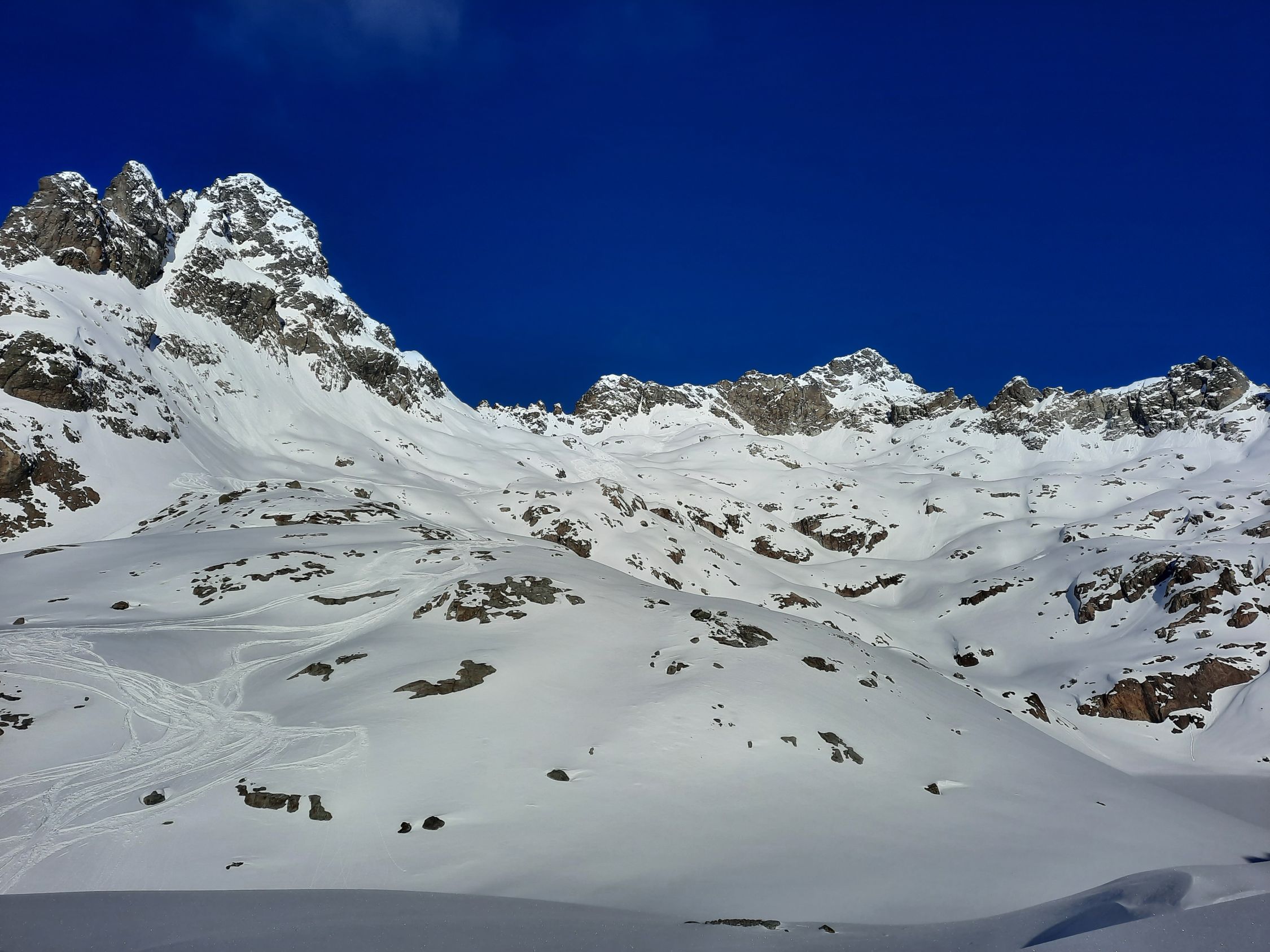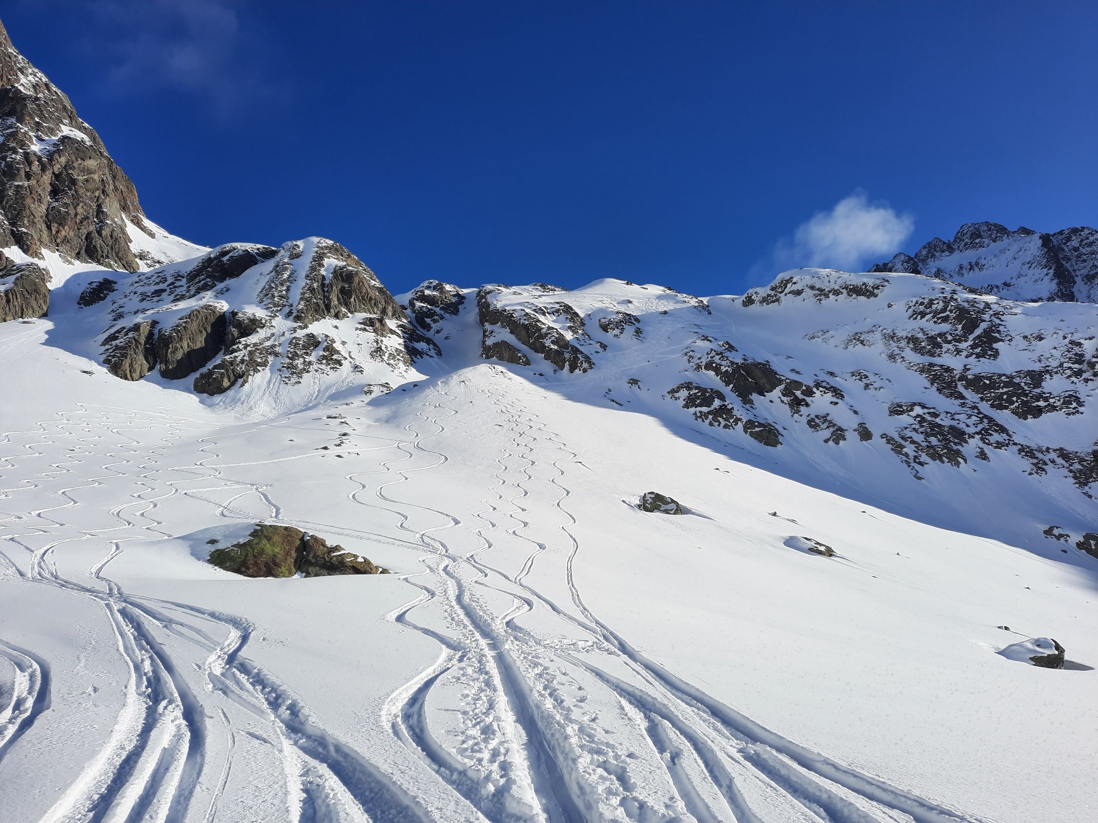 Mit dem Erwärmen und aufkommendem Föhn teils Umformung von Pulver- in Unschnee ab Dienstag.