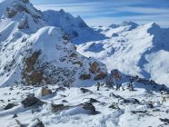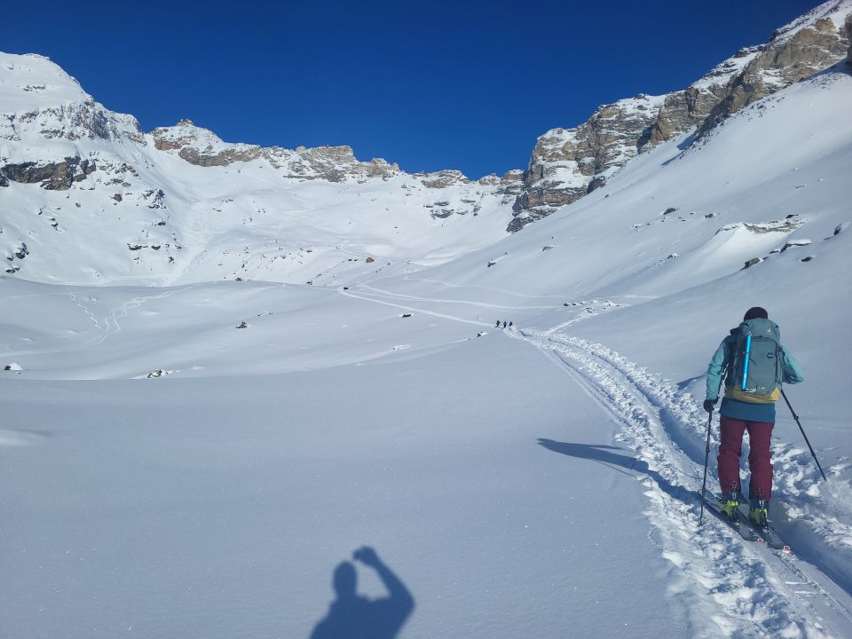 Sehr gute Verhältnisse. Abfahrt über Glacier des Ignes, dann Aufstieg zum Mont des Ritses. Danach Abfahrt nach La Gouille.