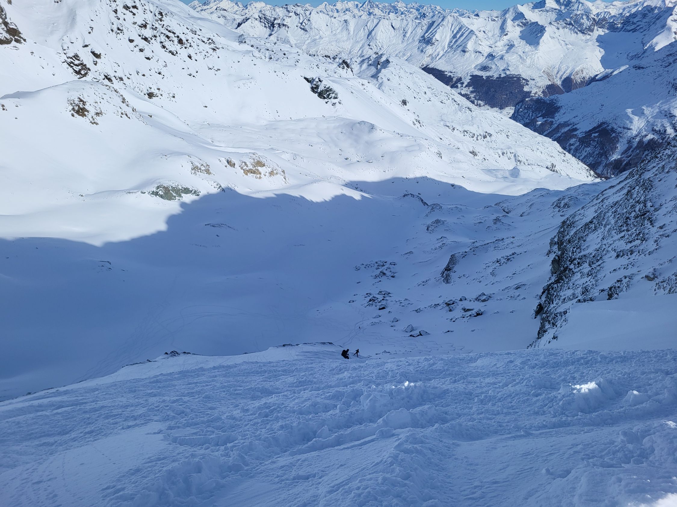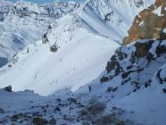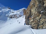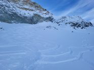 Sehr gute Spur von der Bergstation des Skilifts. Im Couloir kann man mit den Skis bis zum Sattel aufsteigen. Im Abstieg vom Sattel hilft ein Fixseil. Super Pulverschnee in der Abfahrt über den Glacier des Ignes.