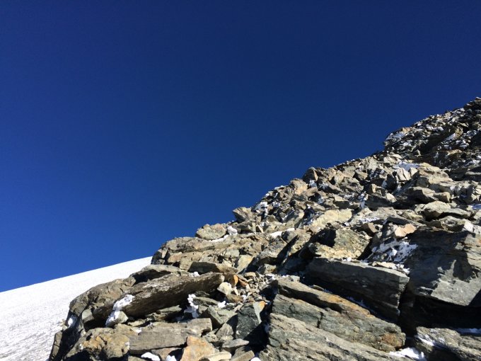 Bei diesen so gut wie absolut trockenen Verhältnissen keine Steigeisen, kein Pickel von Nöten, nur Leichtbergschuhe. (Wäre es irgendwo deswegen heikel geworden, wäre ich umgedreht.)